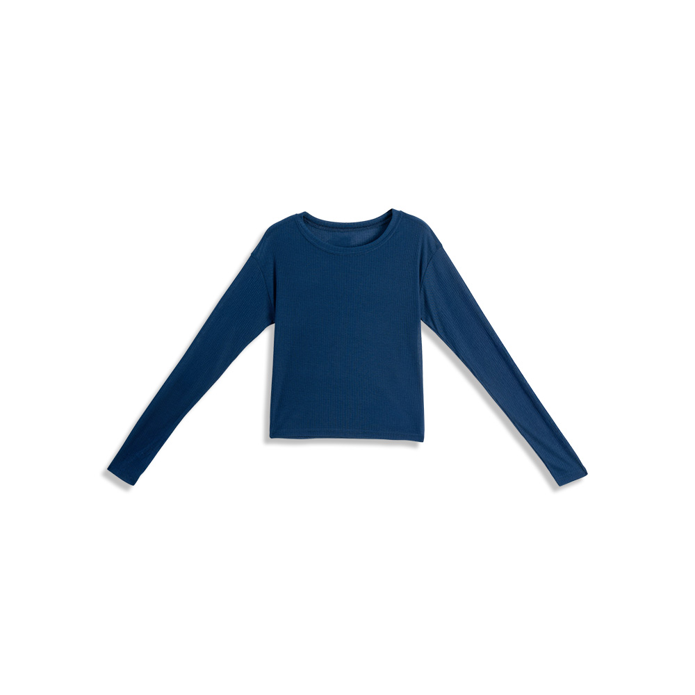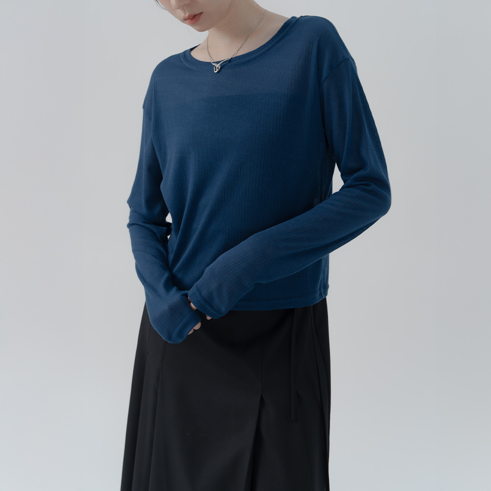 Straight Weave Slightly Transparent Knitted Long Sleeve Top - BlueS/M/L