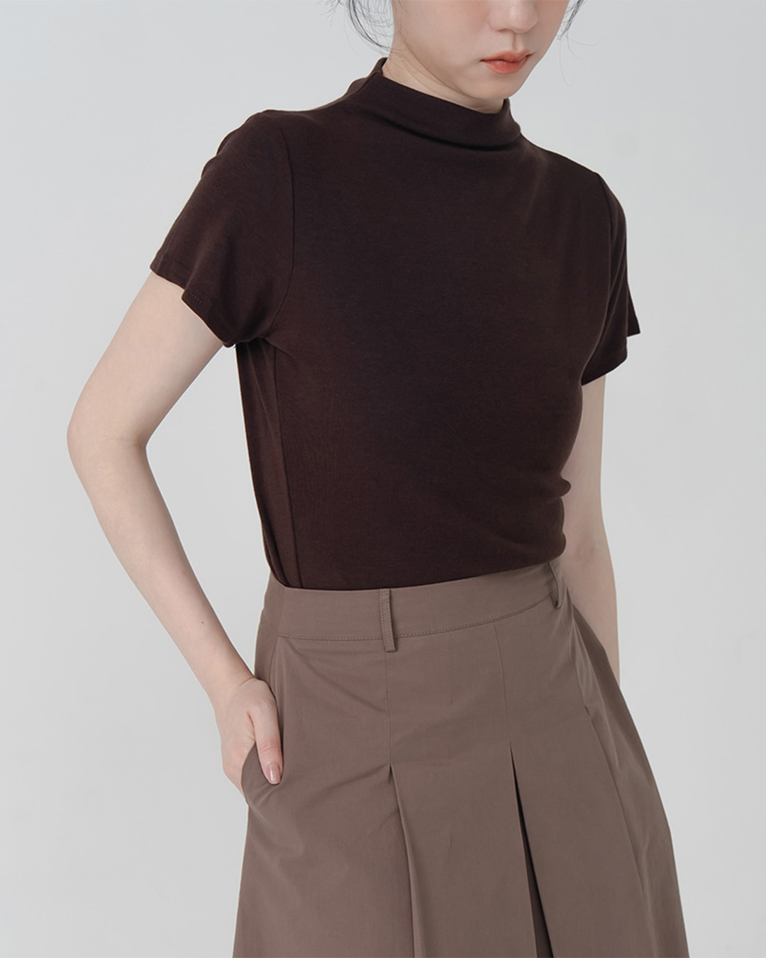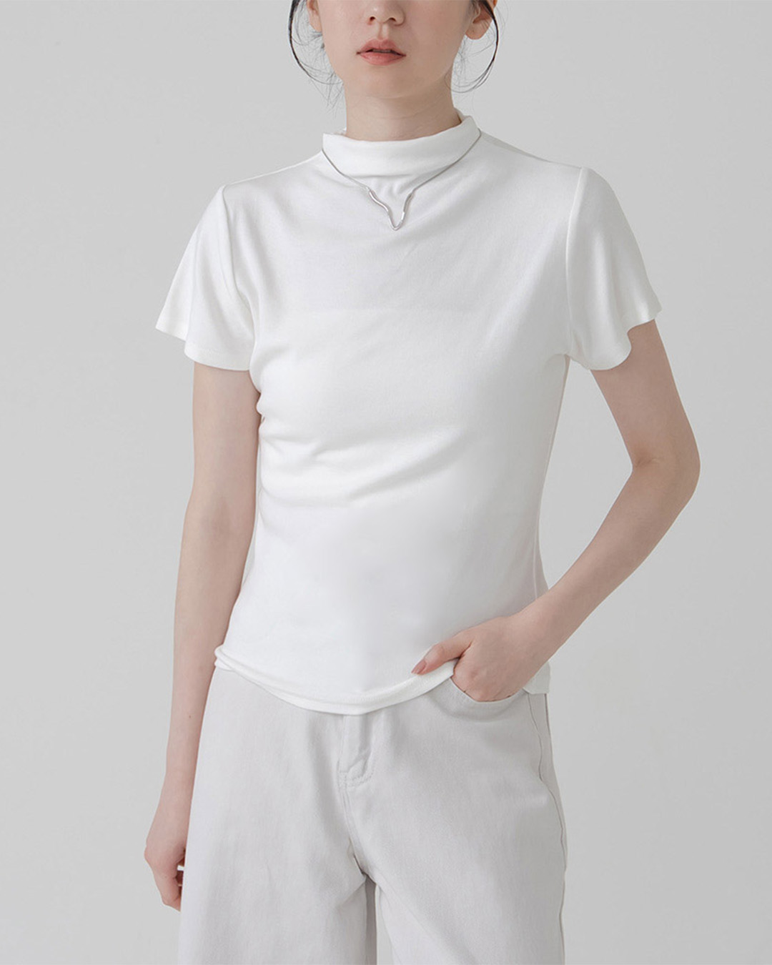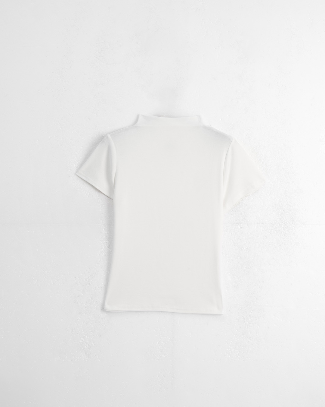 Simple Bottle Collar Design Plain Short Sleeve Top - White