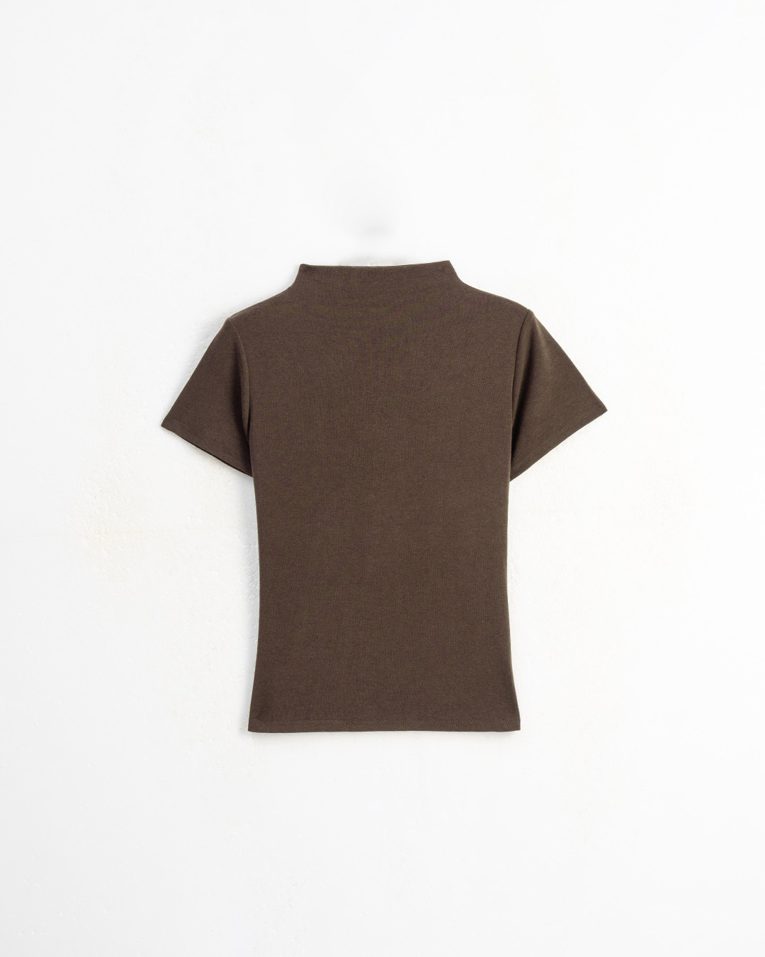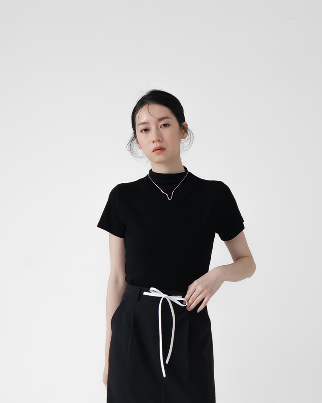 Simple Bottle Collar Design Plain Short Sleeve Top - Black