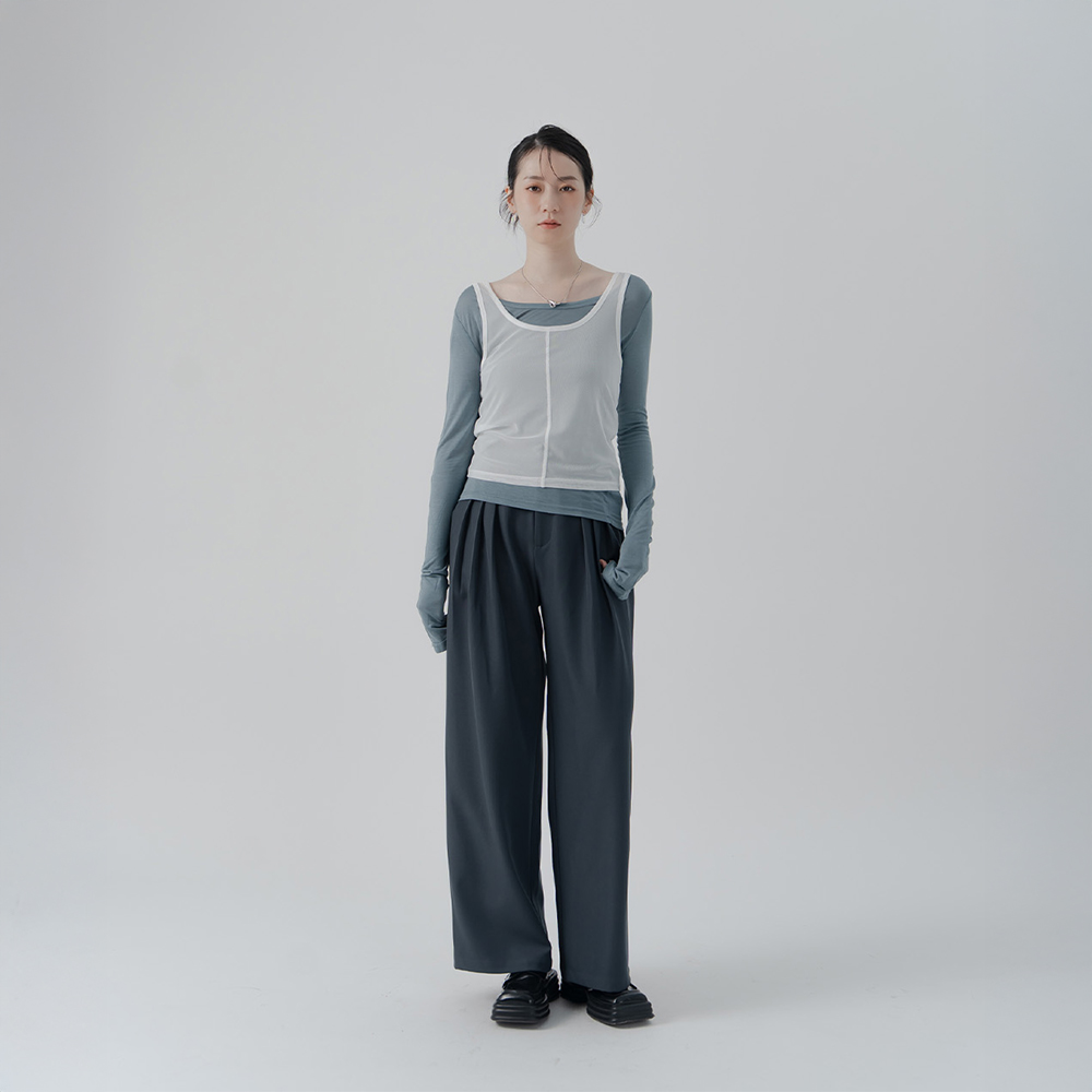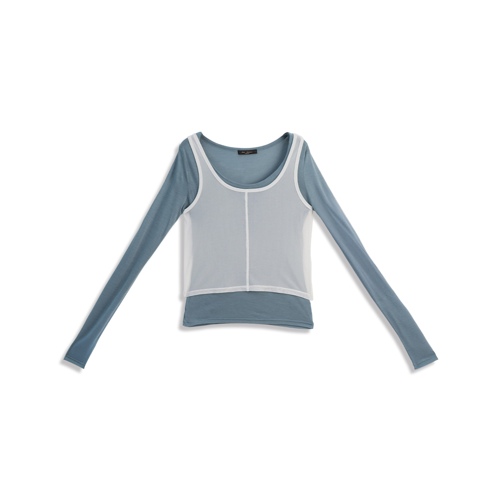 Simple Sheer Vest Two-Piece Long-Sleeved Top - Blue