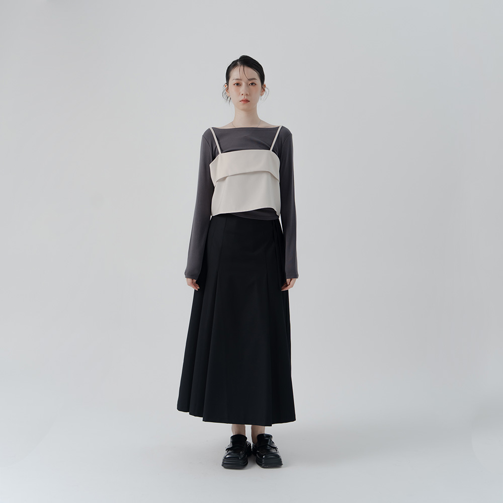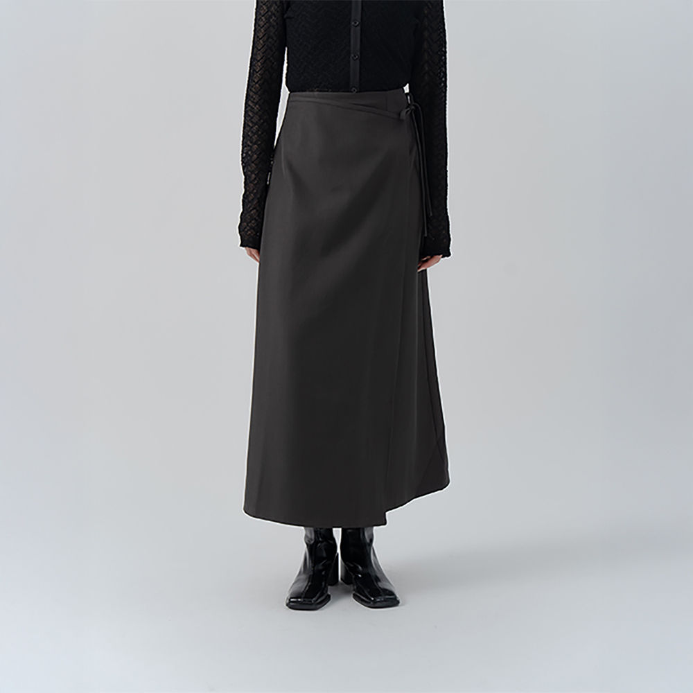 Plain Side Tie Slit Suit Long Skirt - Dark Gray S/M/L
