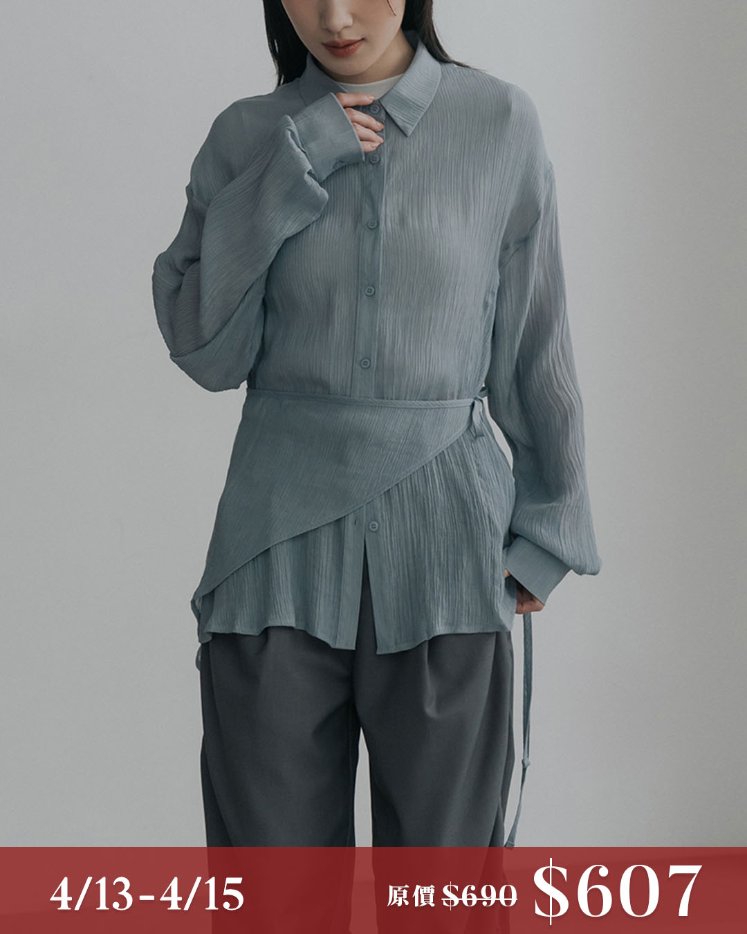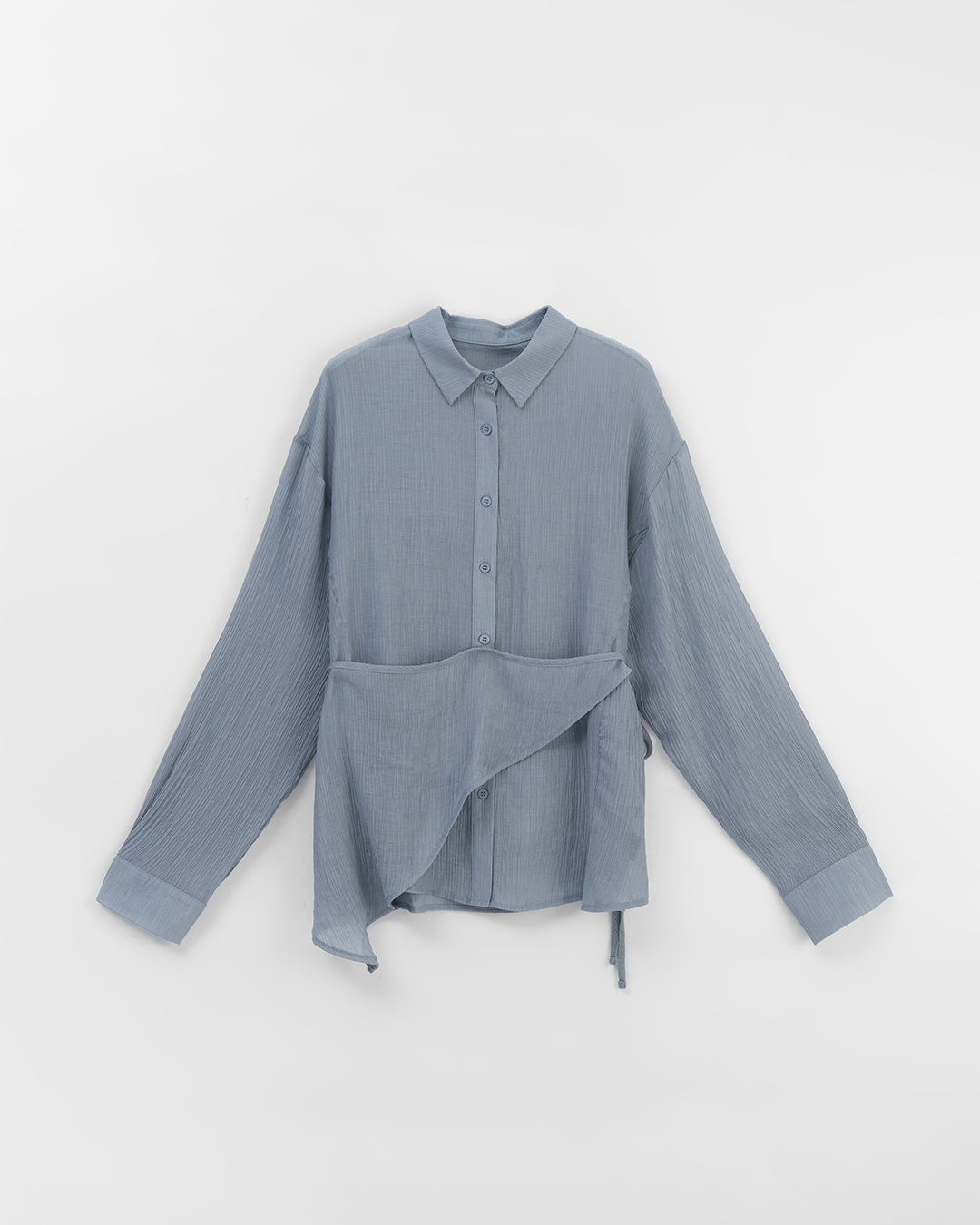 Textured, finely pleated, sheer shirt with a skirt-like drape - gray-blue