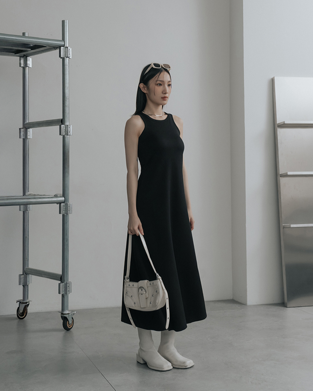 Slit-shoulder fitted tank top dress with bra - Black S/M