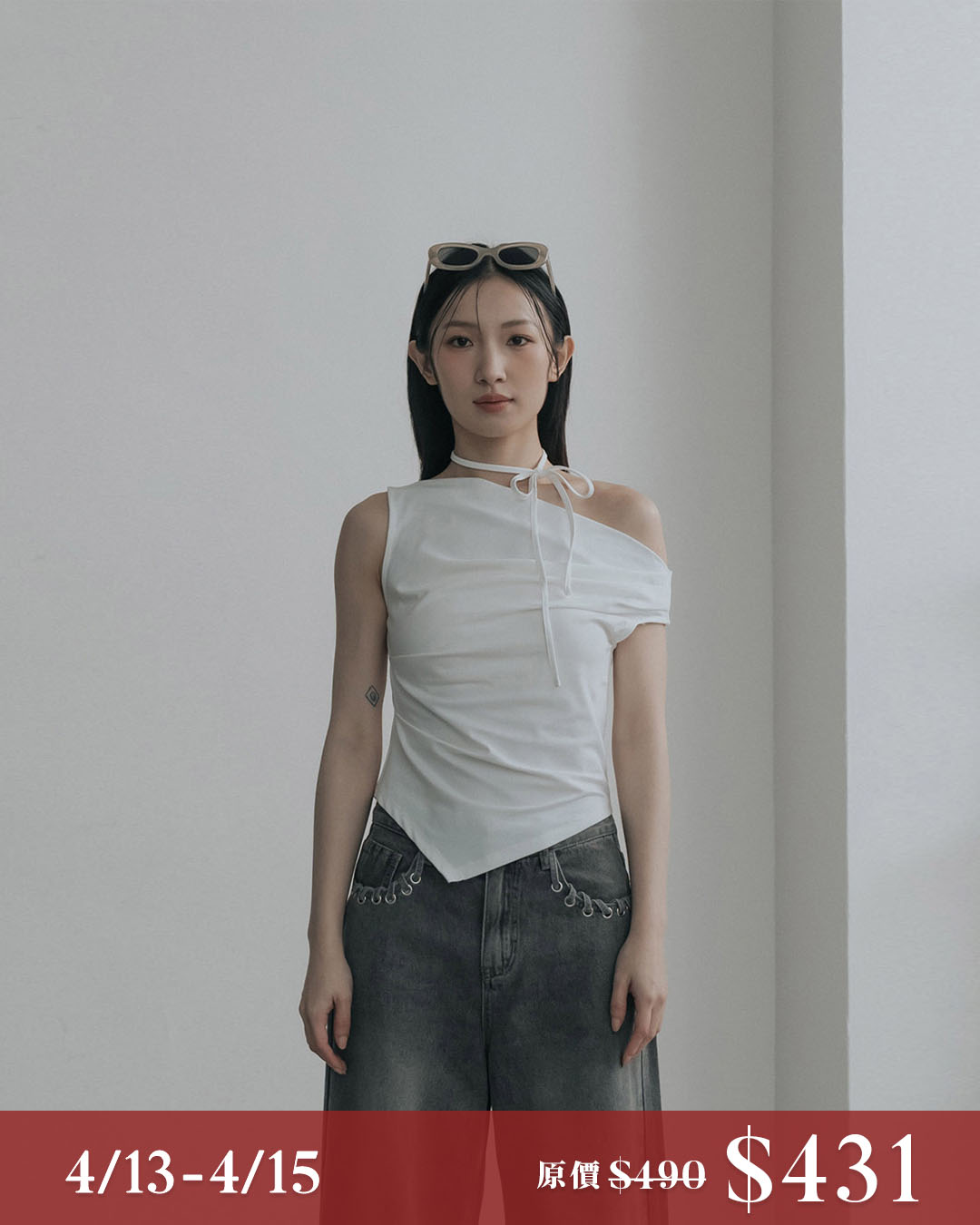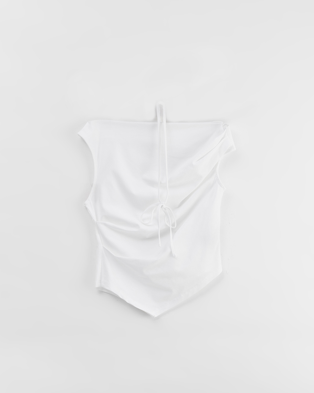 Cooling top with asymmetrical off-shoulder design and tie details - off-white