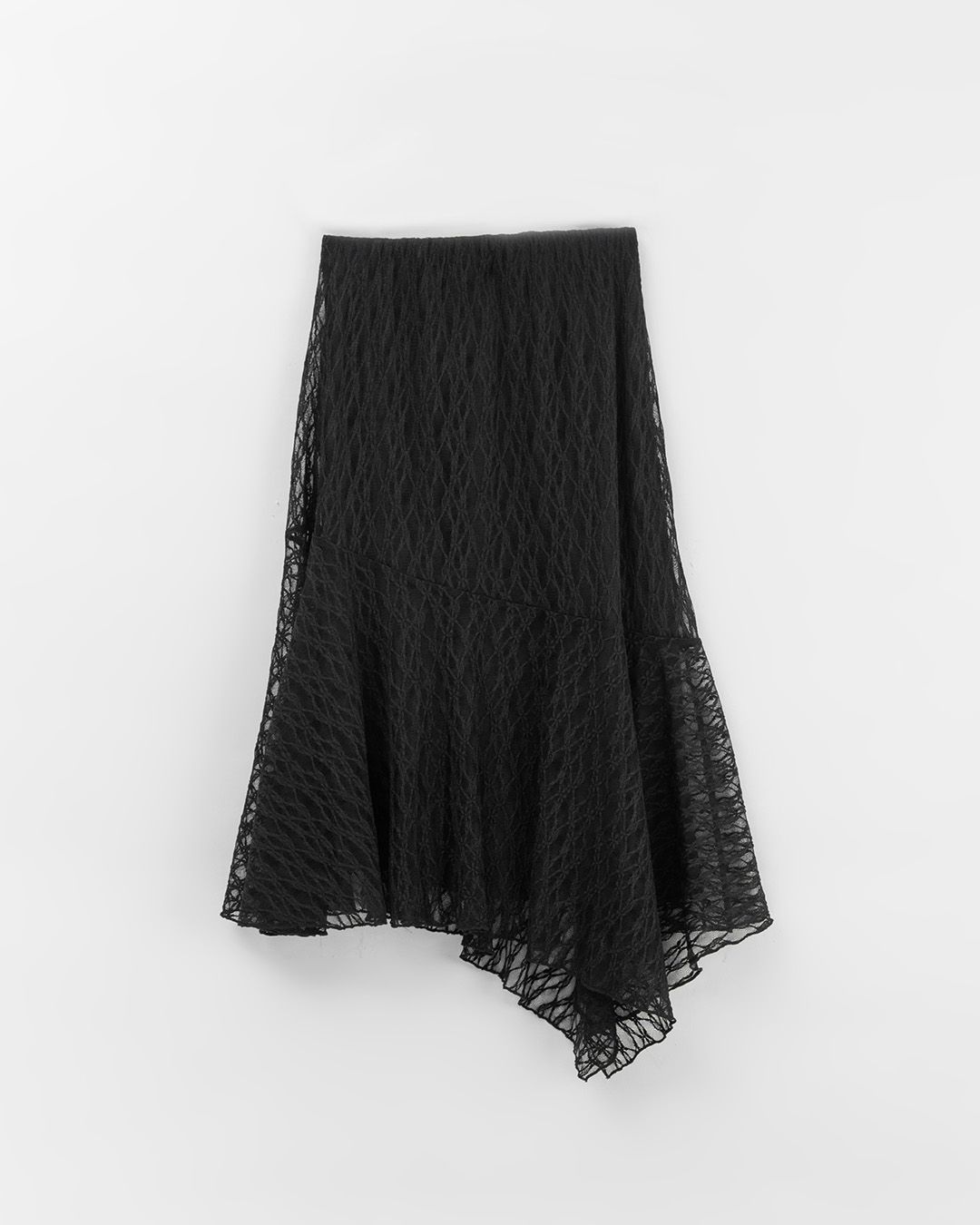 Textured lace irregular cut design three-quarter length skirt-black S/M