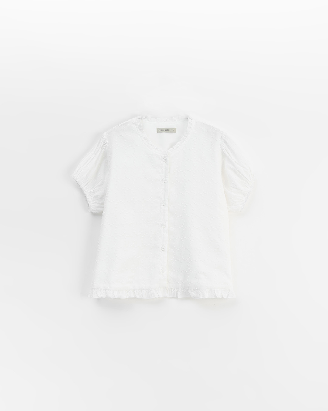Ruffled lace-trimmed puff sleeve top, available in two colors
