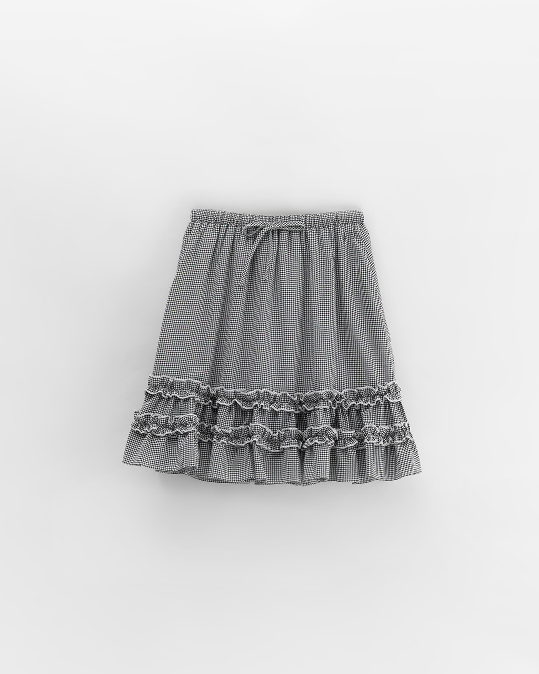 Plaid ruffled five-quarter skirt with tie detail, available in two colors.