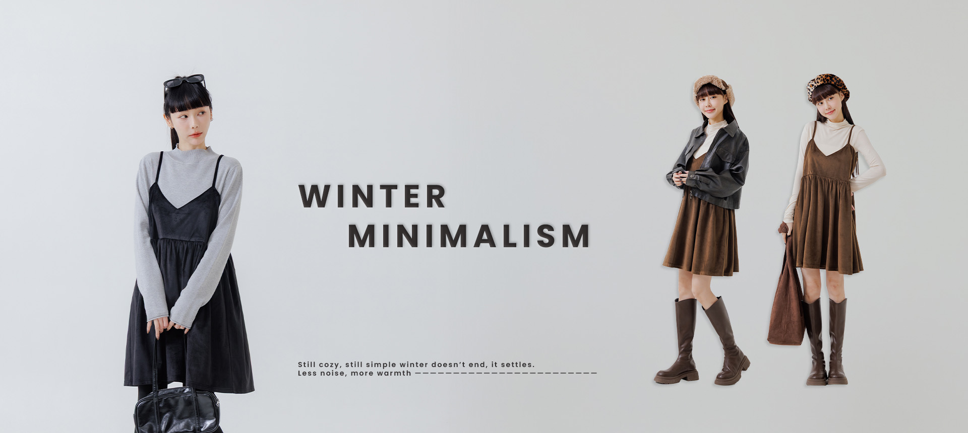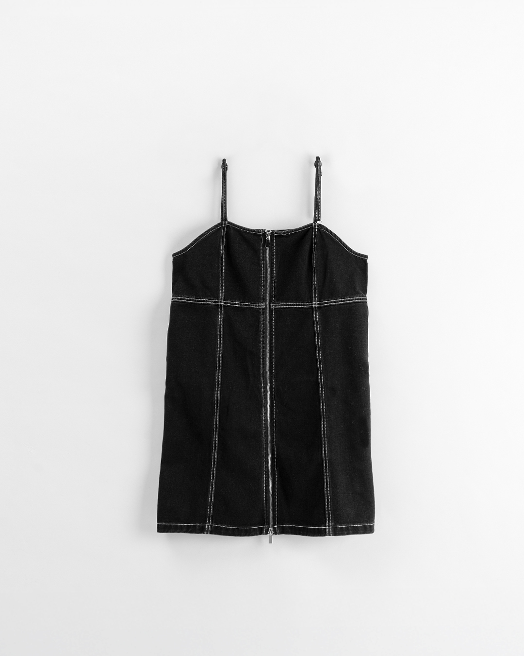 Double-zip workwear camisole dress, available in two colors.