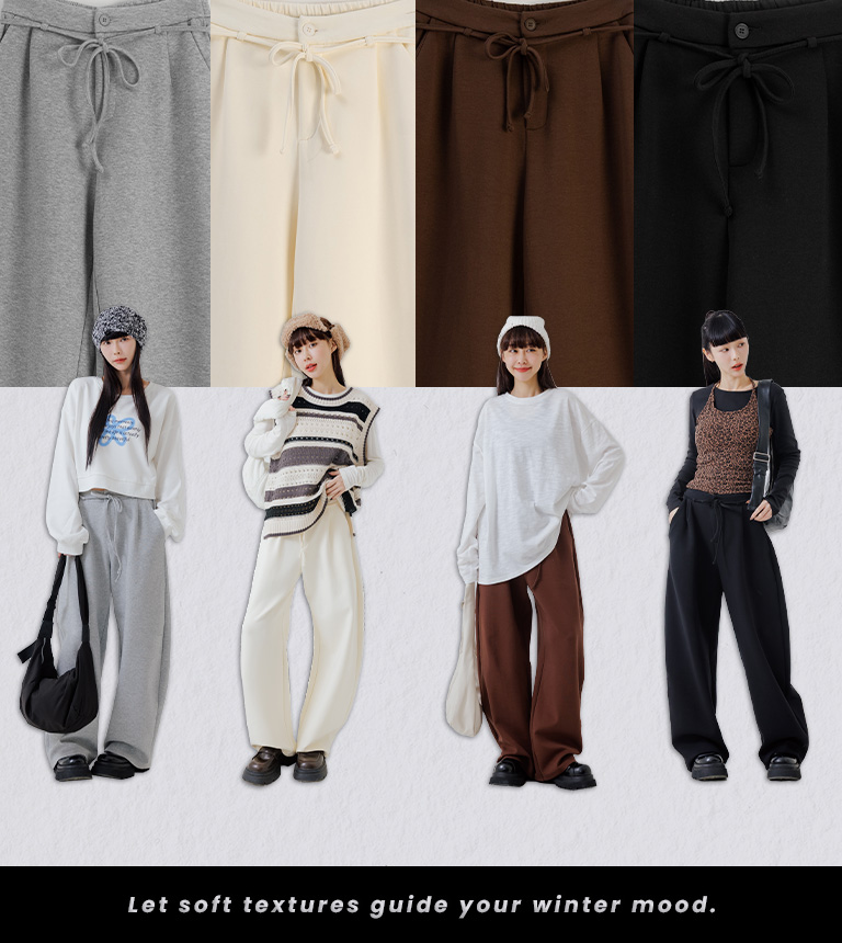 Ribbed fabric, straight hem, with tie detail, available in three colors.