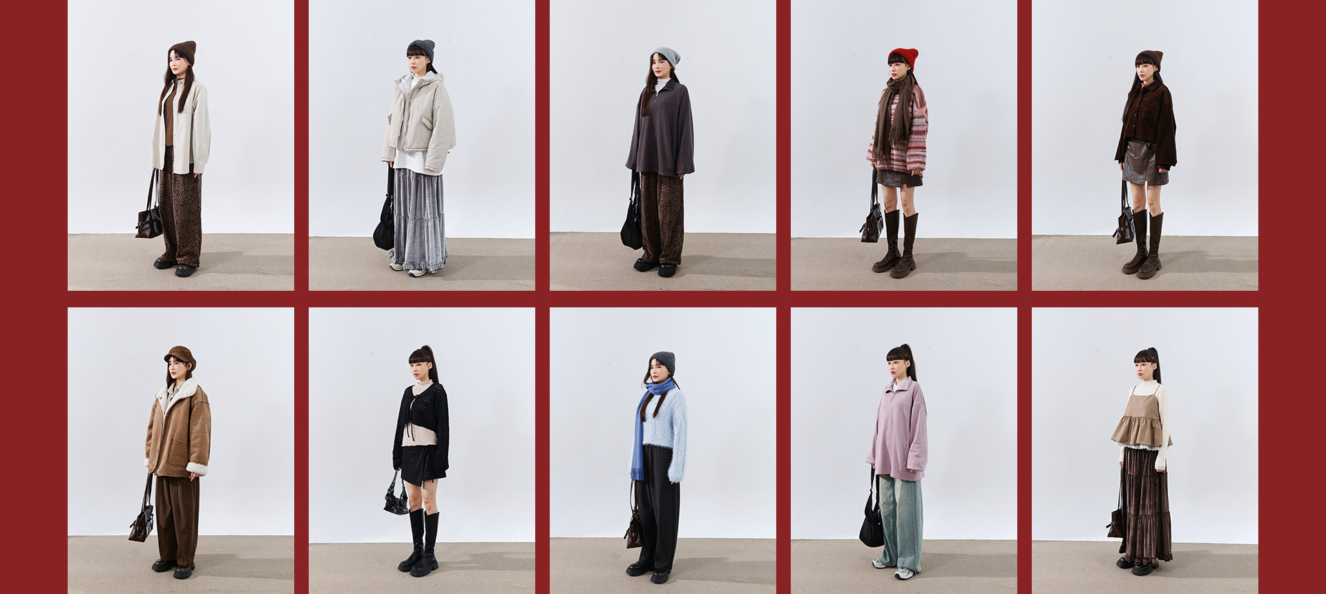 Wide-leg sweatshirt with embroidered English text, available in two colors.
