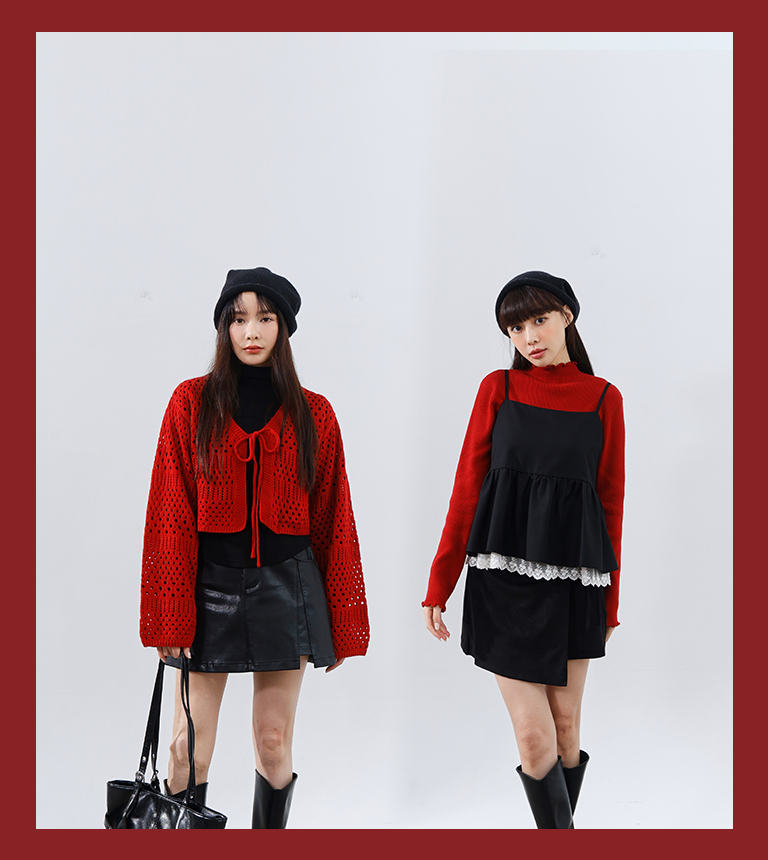 Hollow-out tie-up knit cropped cardigan top, available in three colors