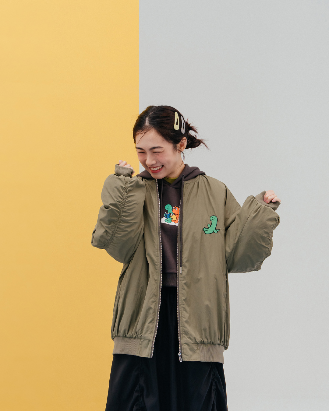 JOGUMAN Cheers quilted baseball jacket, available in two colors.