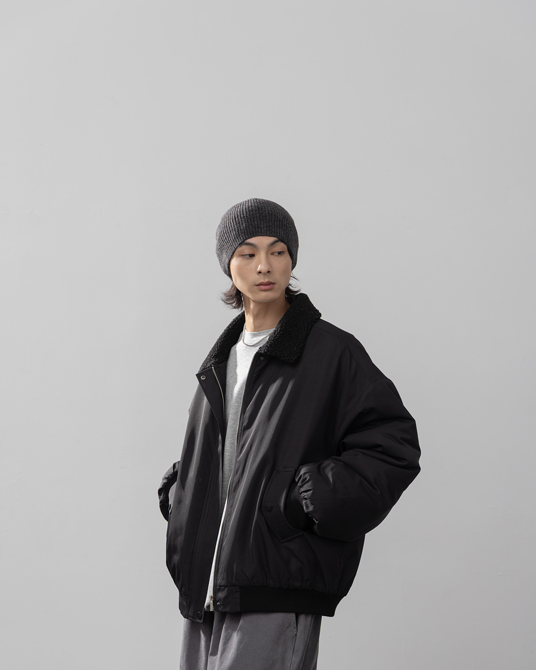 Men's Fleece Collar Brushed Fleece Flight Jacket M/L