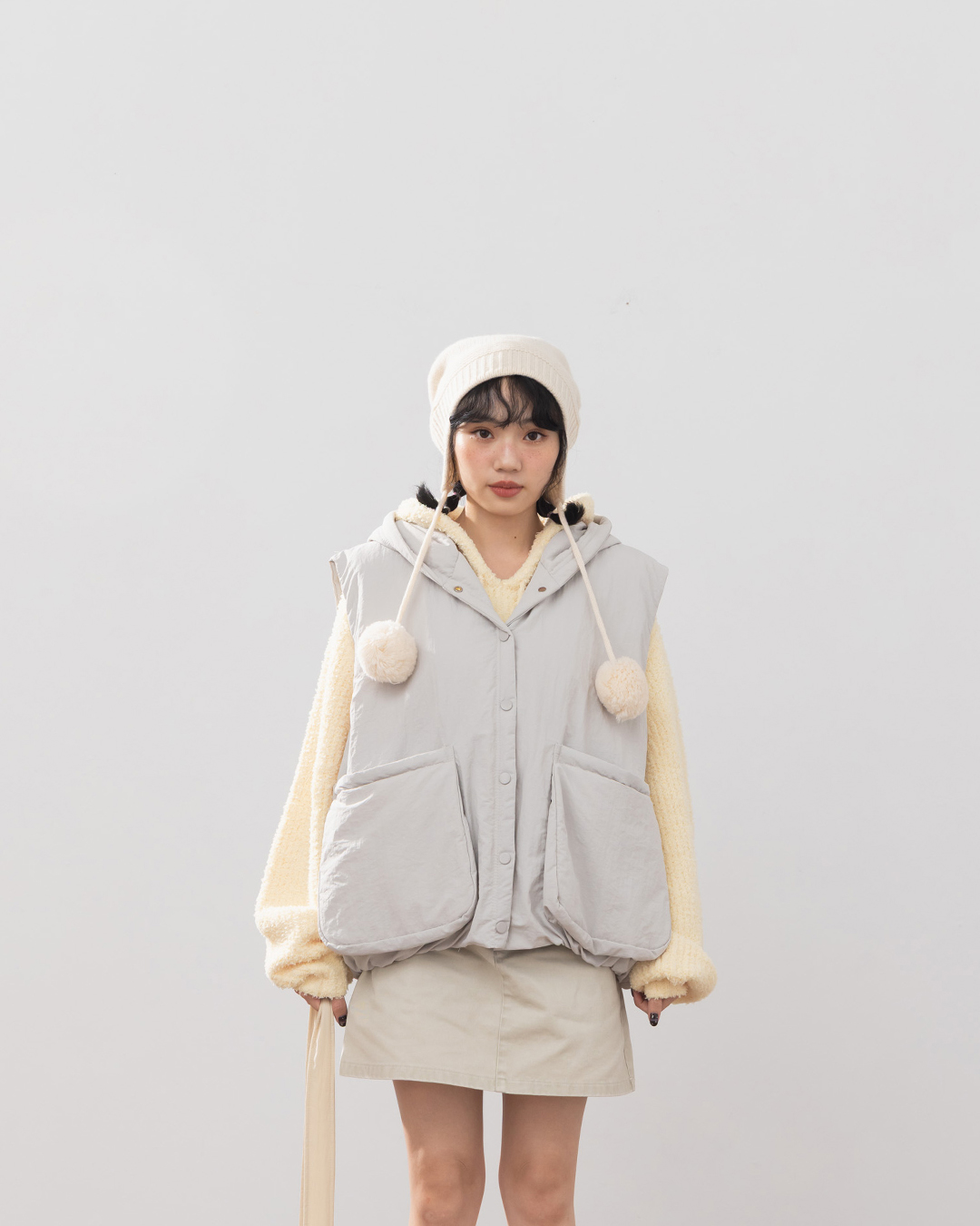 Casual stand-up collar drawstring design quilted vest, two colors available