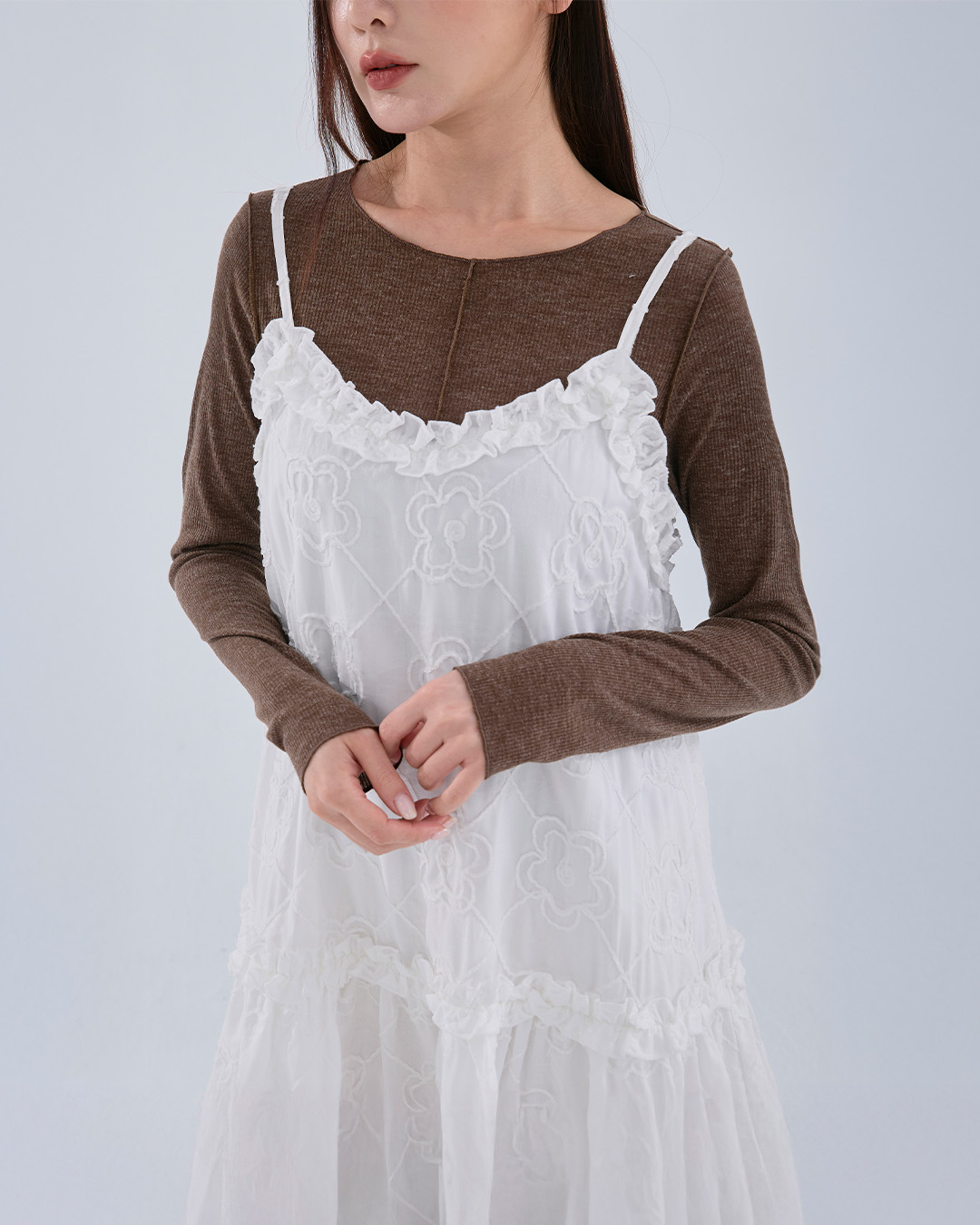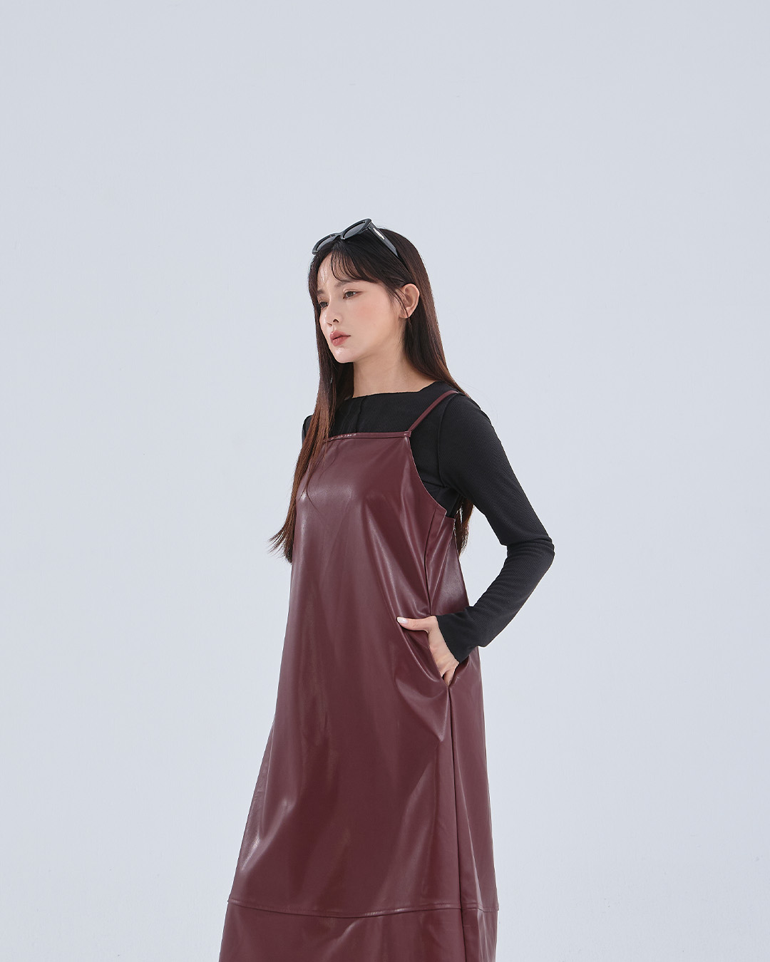 Po-Hsin collection - simple plain thin shoulder fitted vest - milk tea