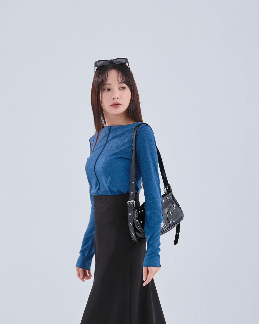 Plain large U-neck design long-sleeved BRA TOP sold in four colors