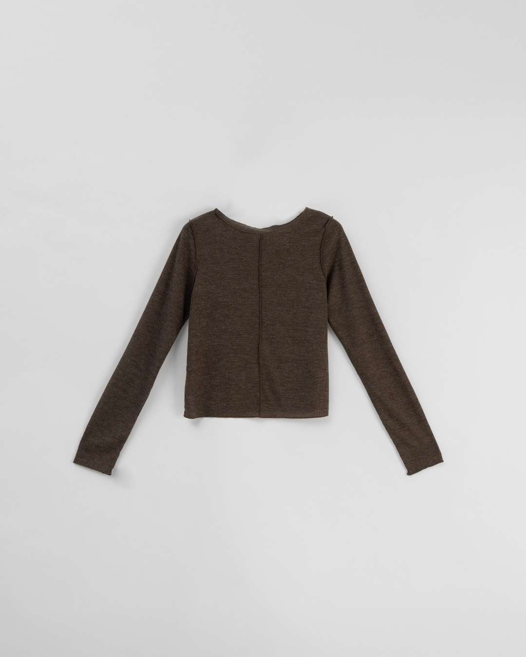 Simple Ribbed Elastic Crew Neck Top - Brown S/M/L