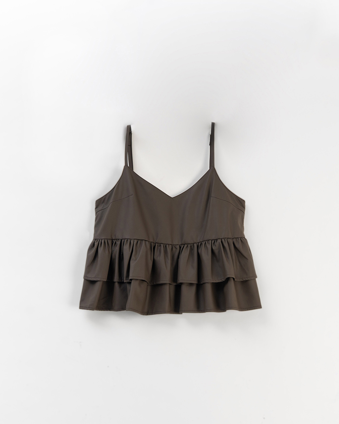 Textured double-layered ruffled shoulder leather cover-up vest, available in two colors.