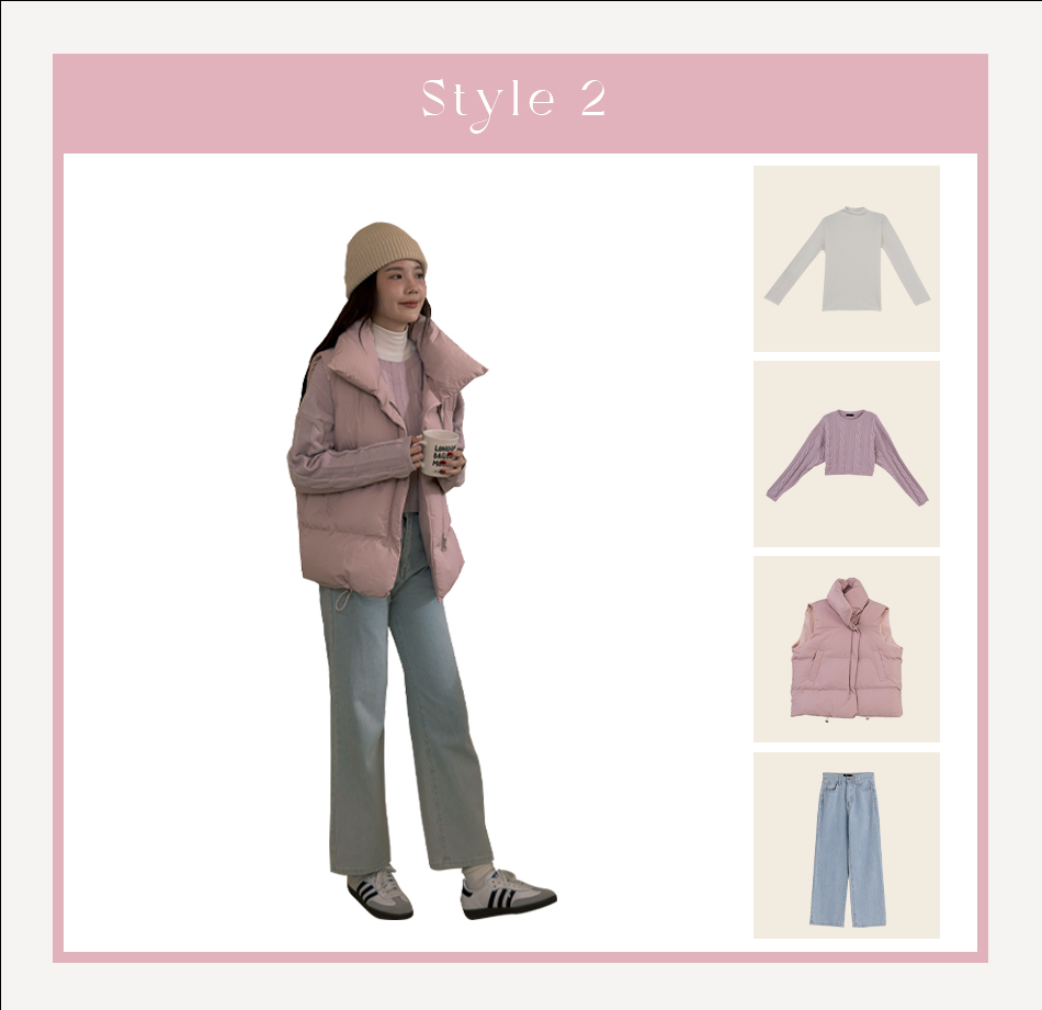 不想要這麼少女的水水們非常推薦加件近期在街頭上曝光度很高的鋪棉背心,儘管也是粉色系,但版型略中性,不但能中和整體的少女感,還非常保暖,不喜歡穿著厚重外套的水水們真的是必備呀!
