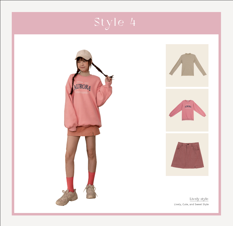 粉底藍字的AURORA衛衣,給人活潑青春感滿滿。內搭杏色高領上衣,不僅保暖看起來也更有層次。下身選擇粉色燈心絨短裙,上下身顏色相對呼應,整個人看起來粉粉嫩嫩的好可愛。上半身寬鬆保暖,下半身纖細修長,視覺比例上輕鬆擁有逆天長腿。輕鬆再搭配棒球帽與球鞋,整體甜美又休閒!