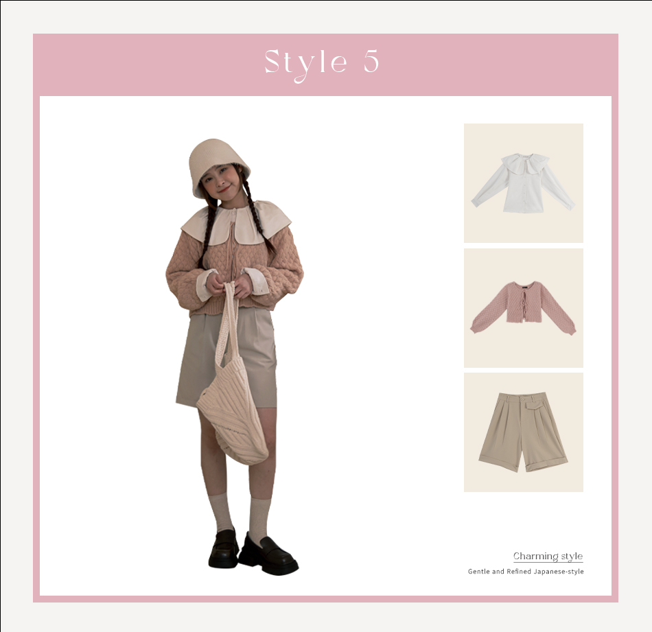 單穿襯衫看起來較單調,不妨在外面加一件綁帶背心增添整體層次感。領片設計非常修飾臉部線條,也讓整個人更有精神,下半身選擇米杏色的西裝短褲,半可愛半氣質的穿搭,大家看了都目不轉睛!