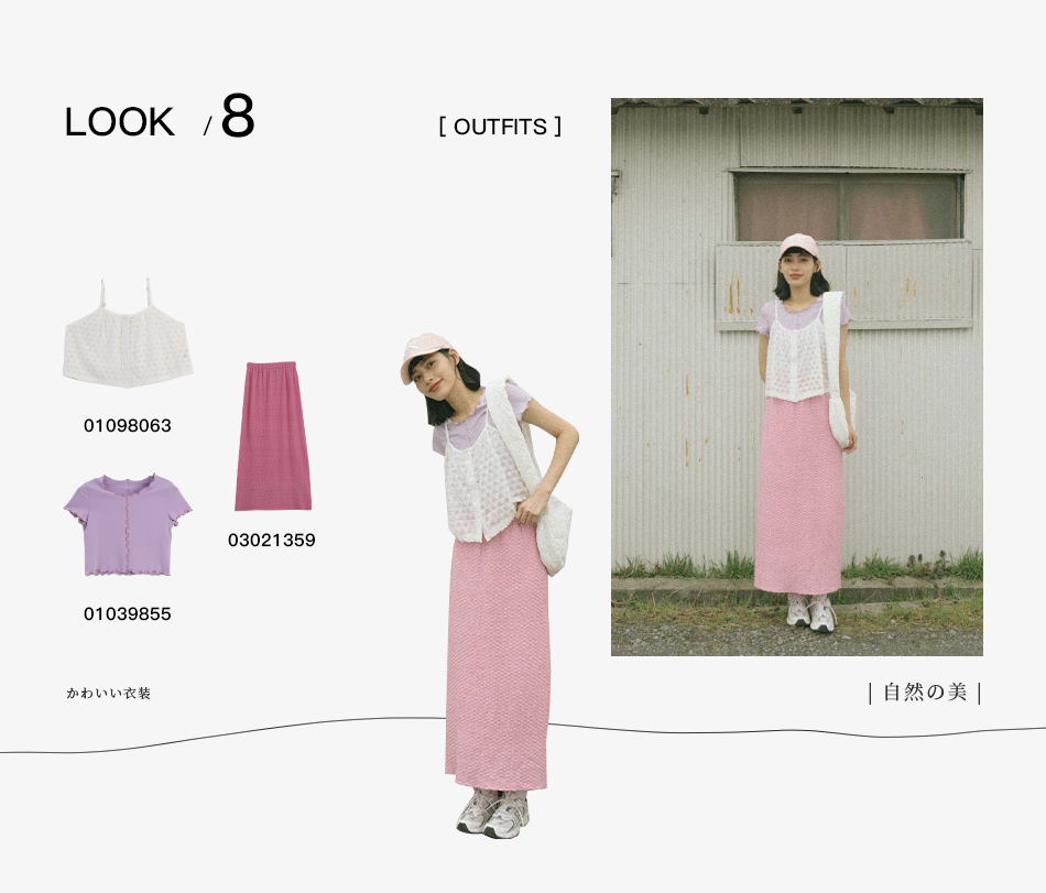說到夏日不可少的當然是繽紛的穿搭!粉紫色搭配是不會出錯又可愛的選擇~上身選用撞色木耳邊短版上衣,粉色木耳邊與粉色裙子相互呼應,整體和諧好看。最後再加一件白色三角鏤空背心,增添整體層次感。夏日這樣穿,輕鬆成為日系粉嫩Girl!