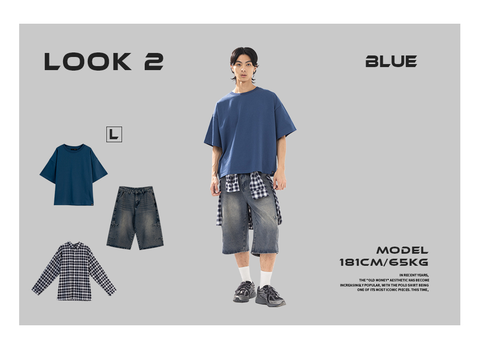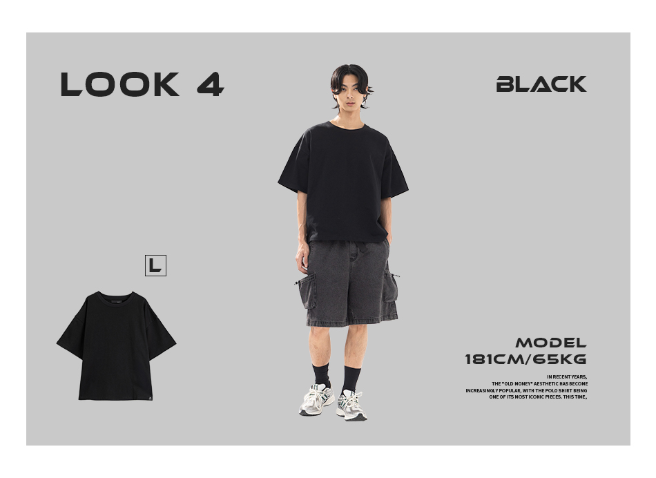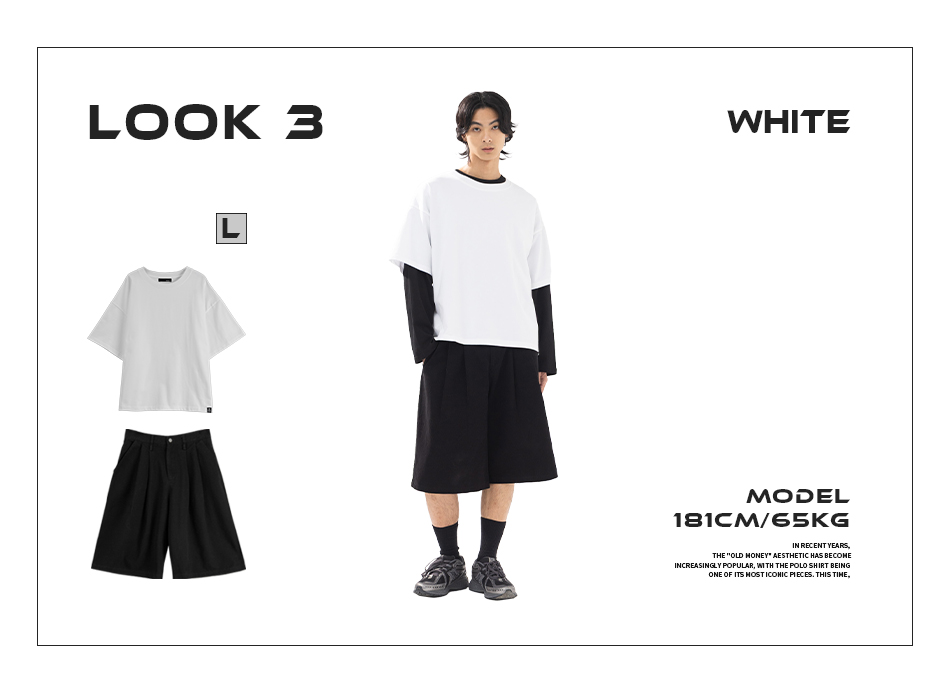 Boxy T是以寬鬆版型與短版剪裁所構成的經典輪廓設計上衣,透過加寬的肩線設計,巧妙放大上半身寬度,短版衣長有效拉高腰線,優化身體比例,成為修飾身形的實用利器。這套搭配以內著黑色長袖為整體造型增添層次感,兼具實穿性與造型感。