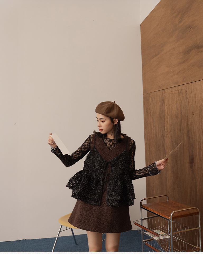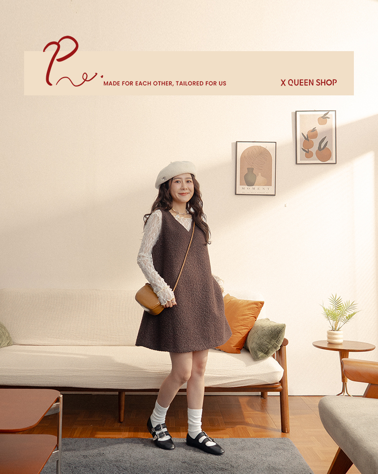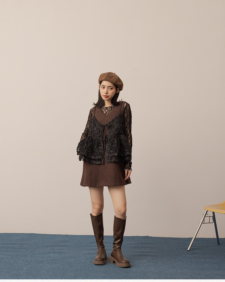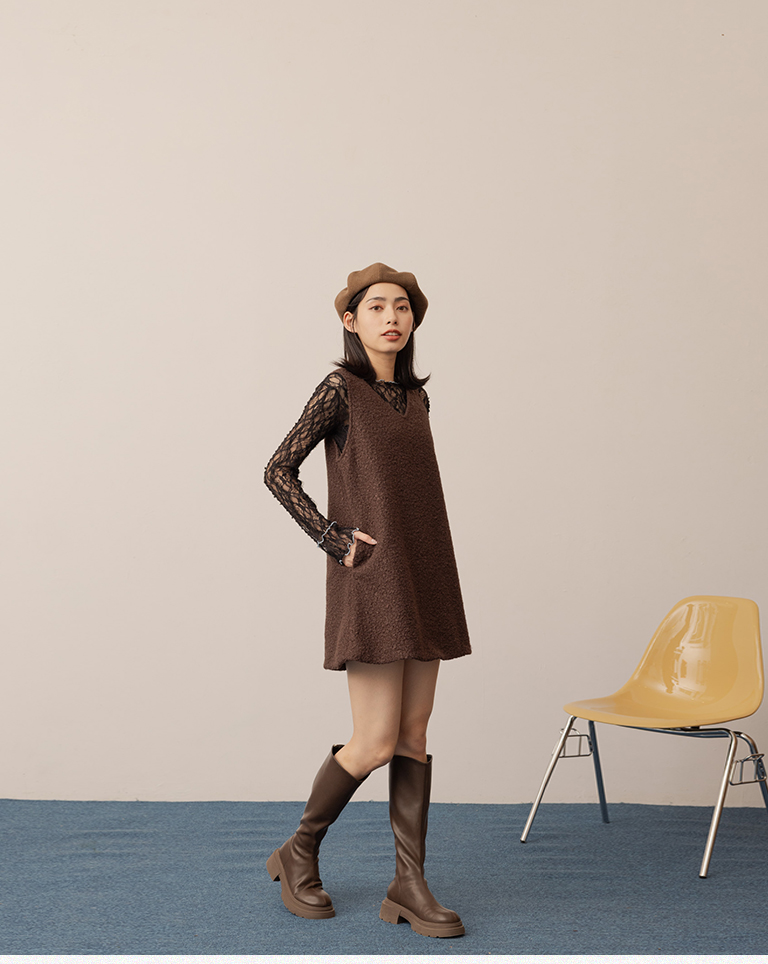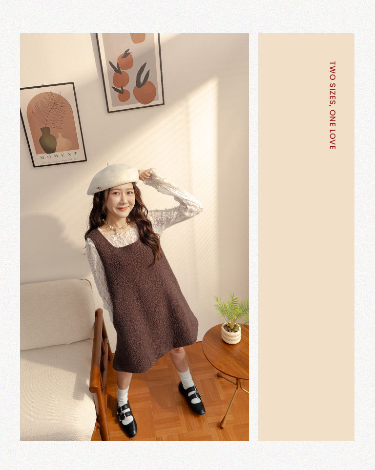 姵萱聯名 氣質毛絨兩穿背心短洋裝-咖 S/M
