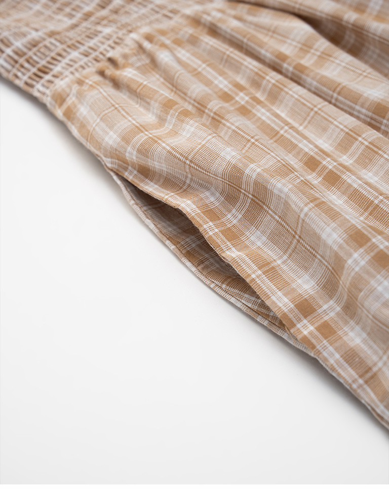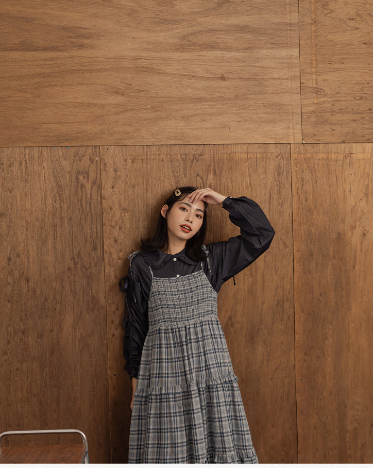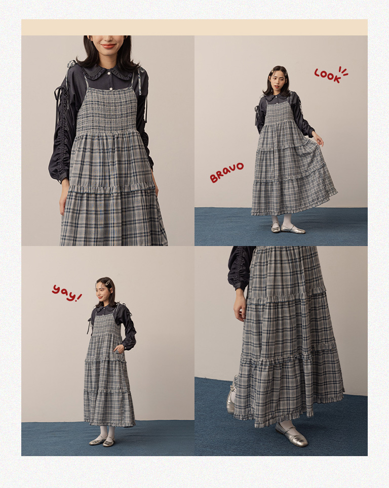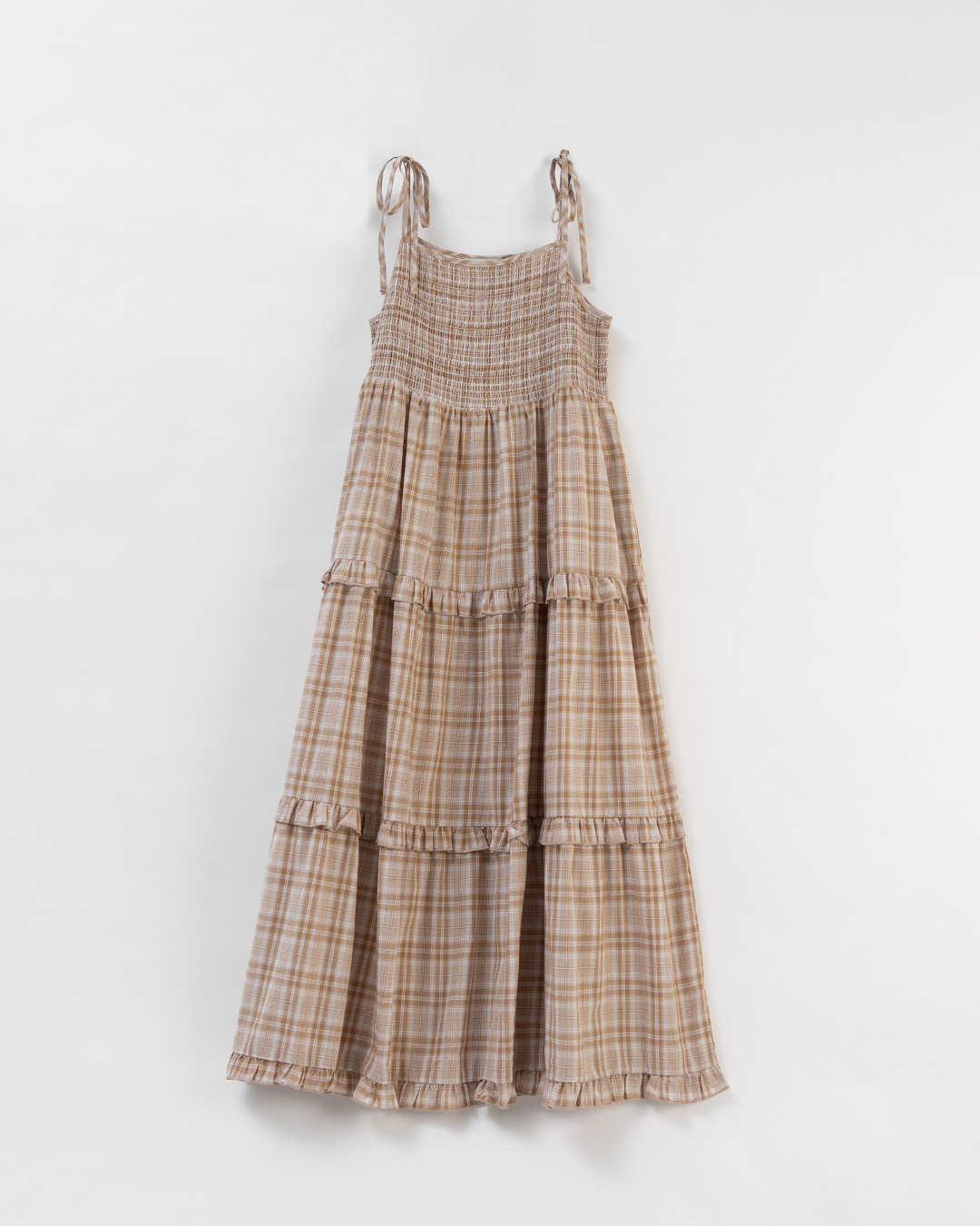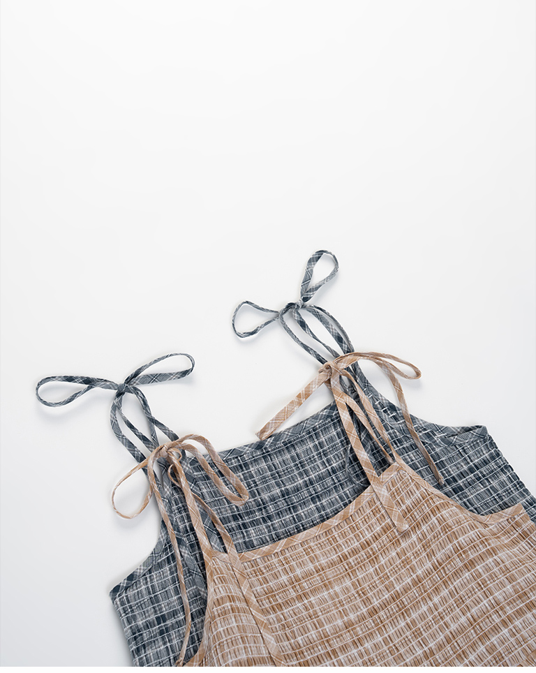 姵萱聯名 格紋荷葉細肩綁帶長洋裝