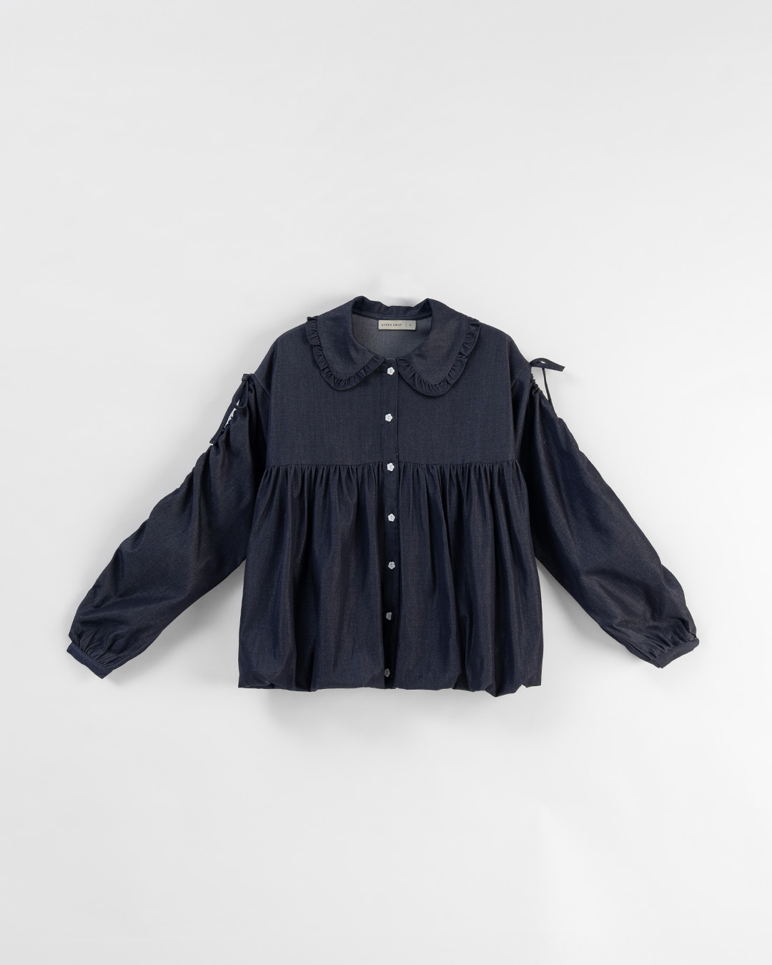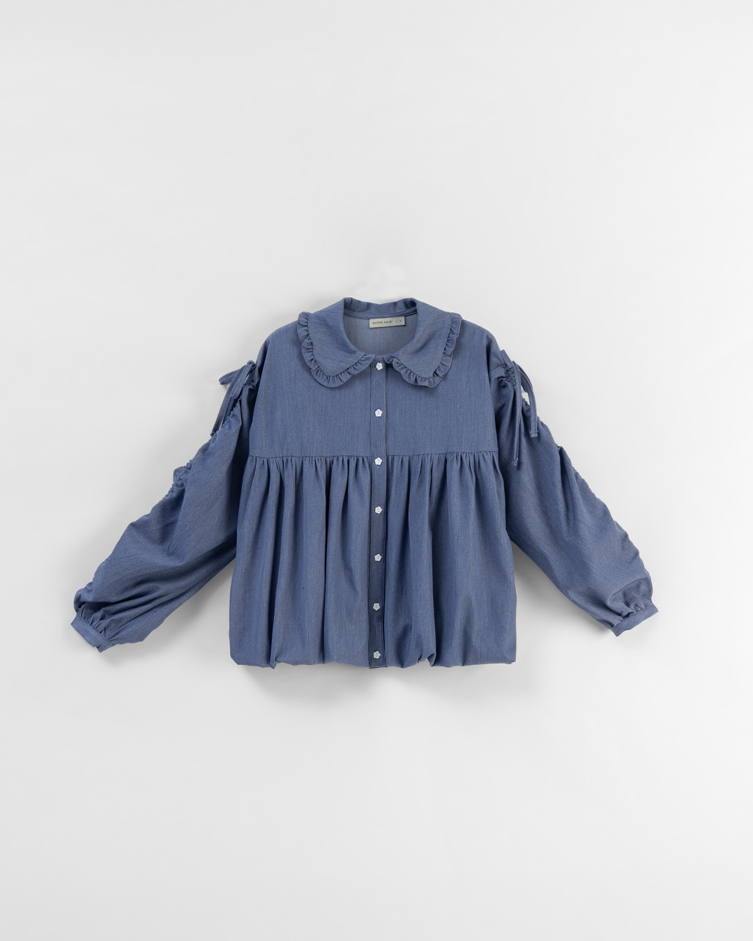 S~L身形實測!分尺寸皺皺木耳邊透膚高領長袖上衣