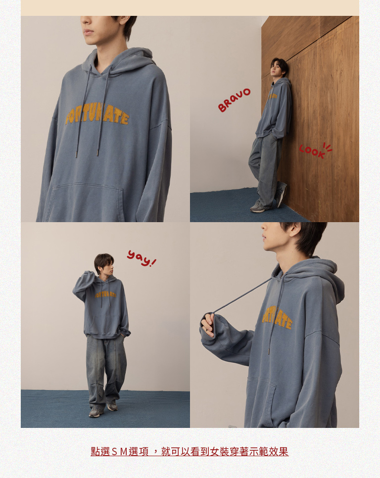姵萱聯名 洗水刺繡口袋連帽衛衣-藍S/M/L/XL