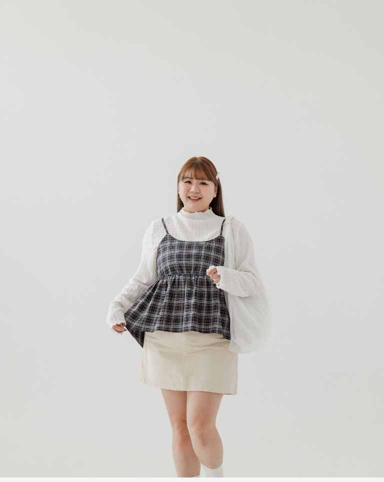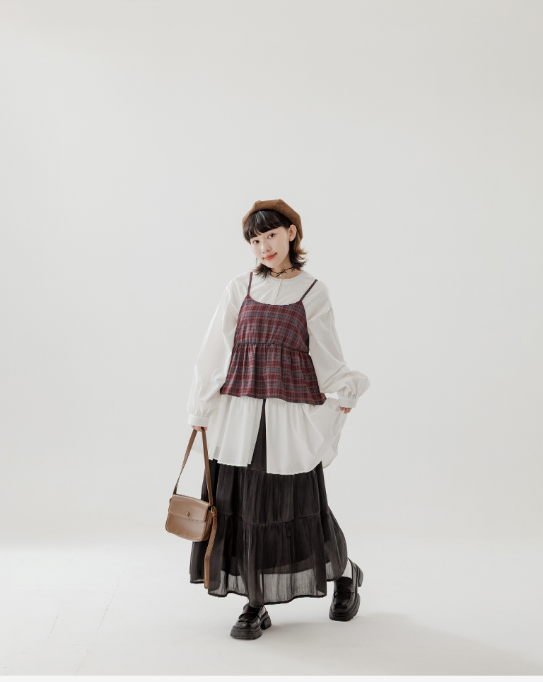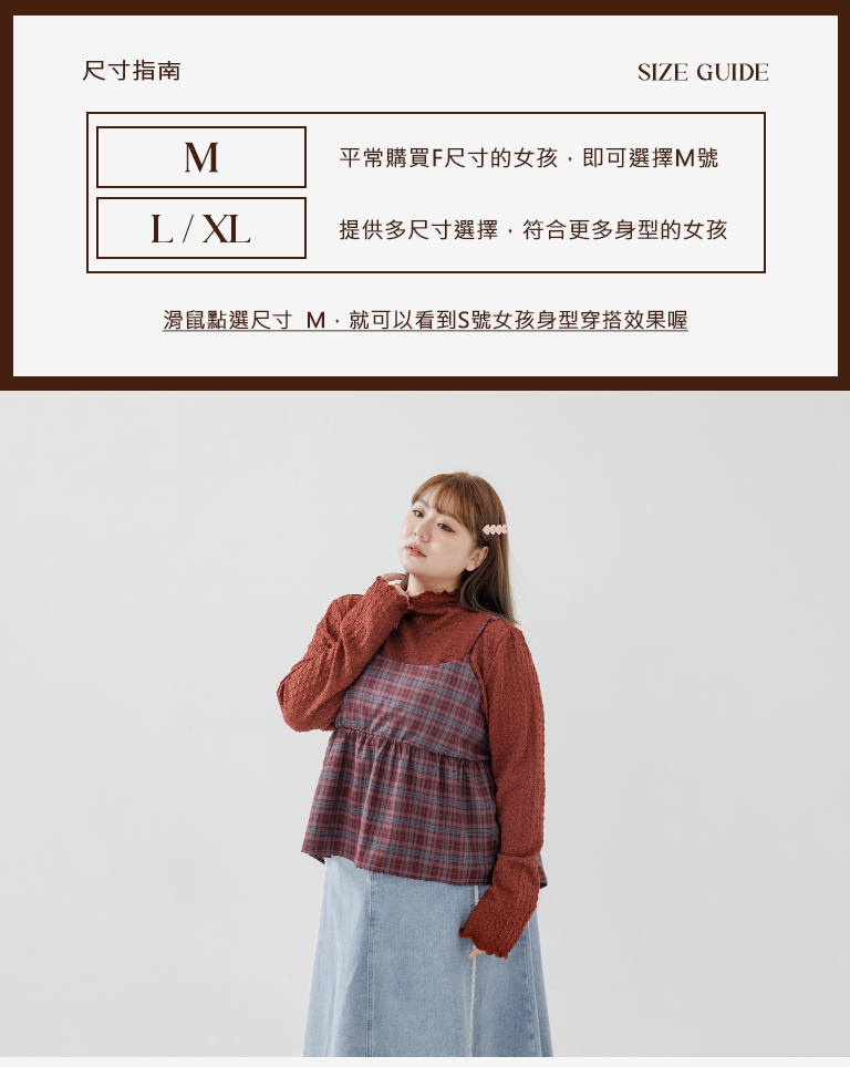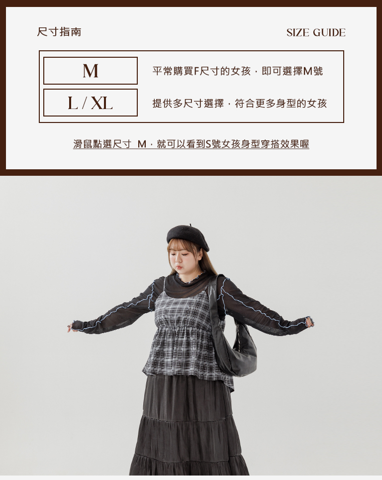 棉花糖 格紋傘擺罩衫背心 兩色售M/L/XL