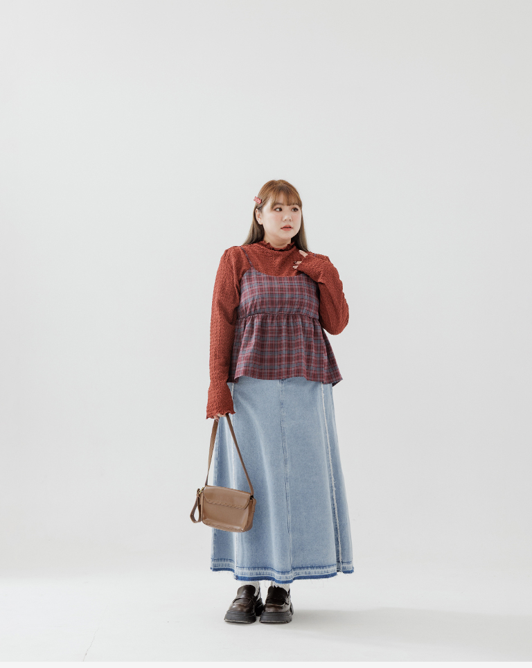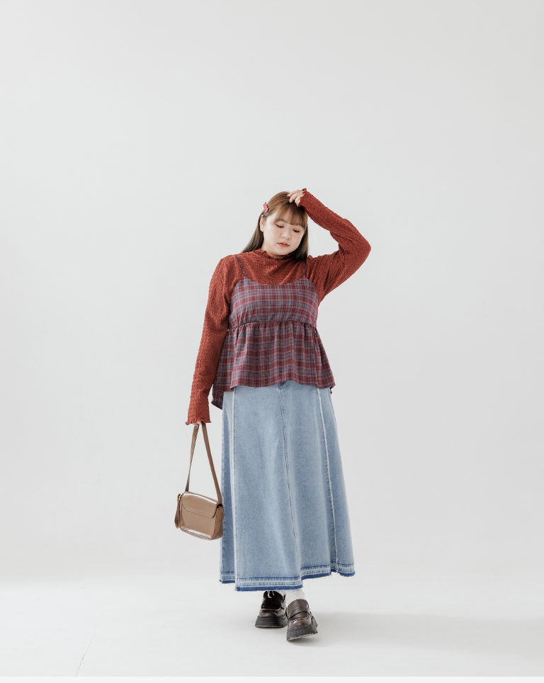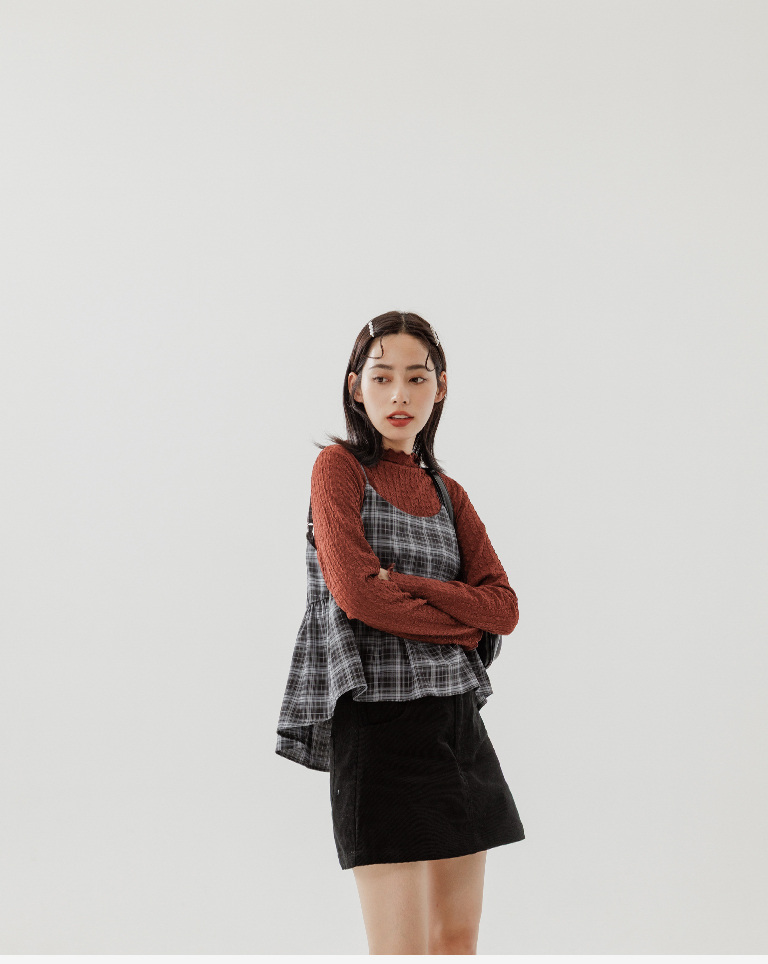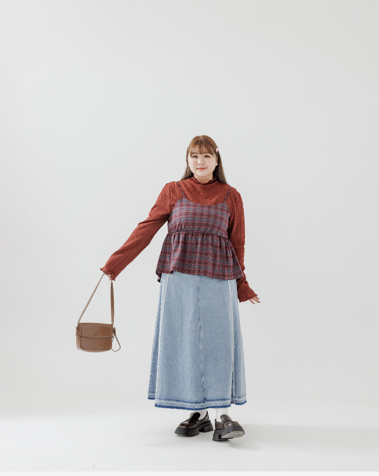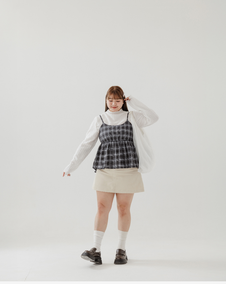 棉花糖 格紋傘擺罩衫背心 兩色售M/L/XL