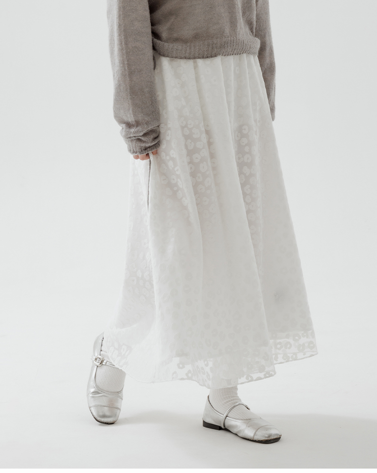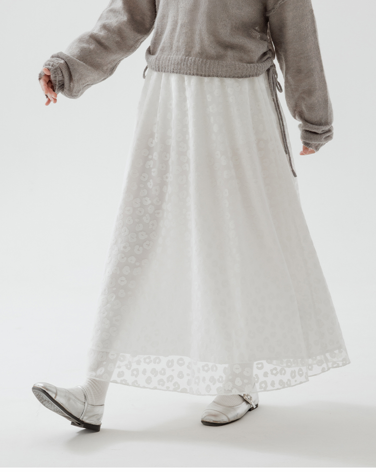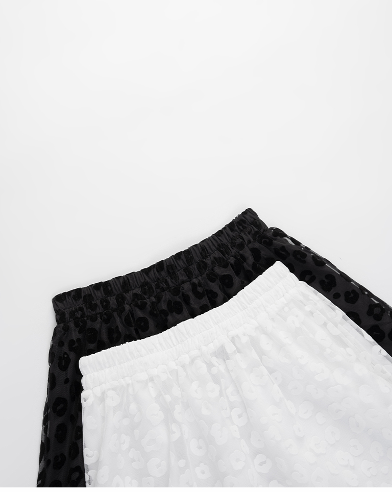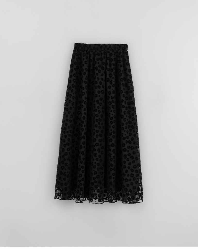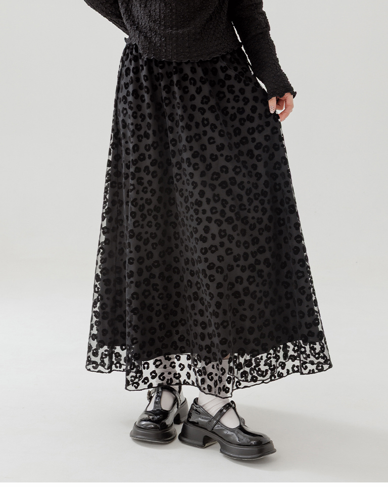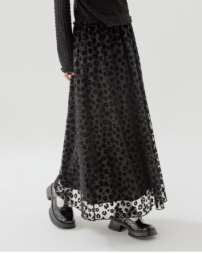 豹紋紋理絨感網紗設計直筒長裙 兩色售