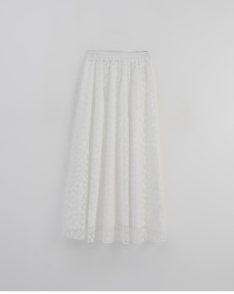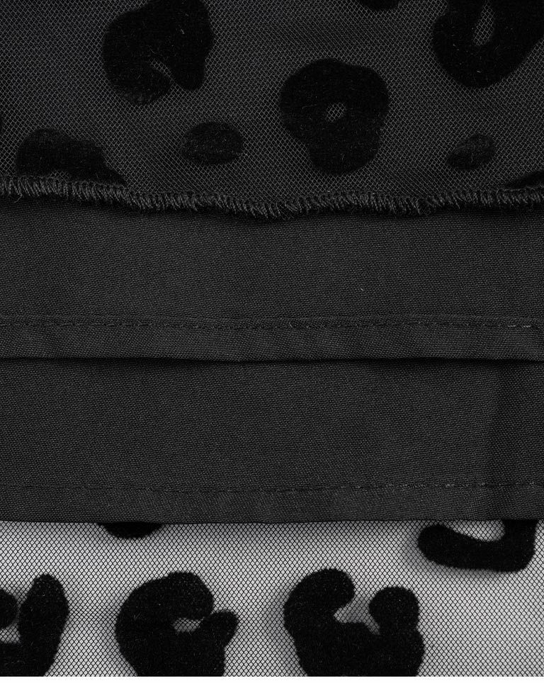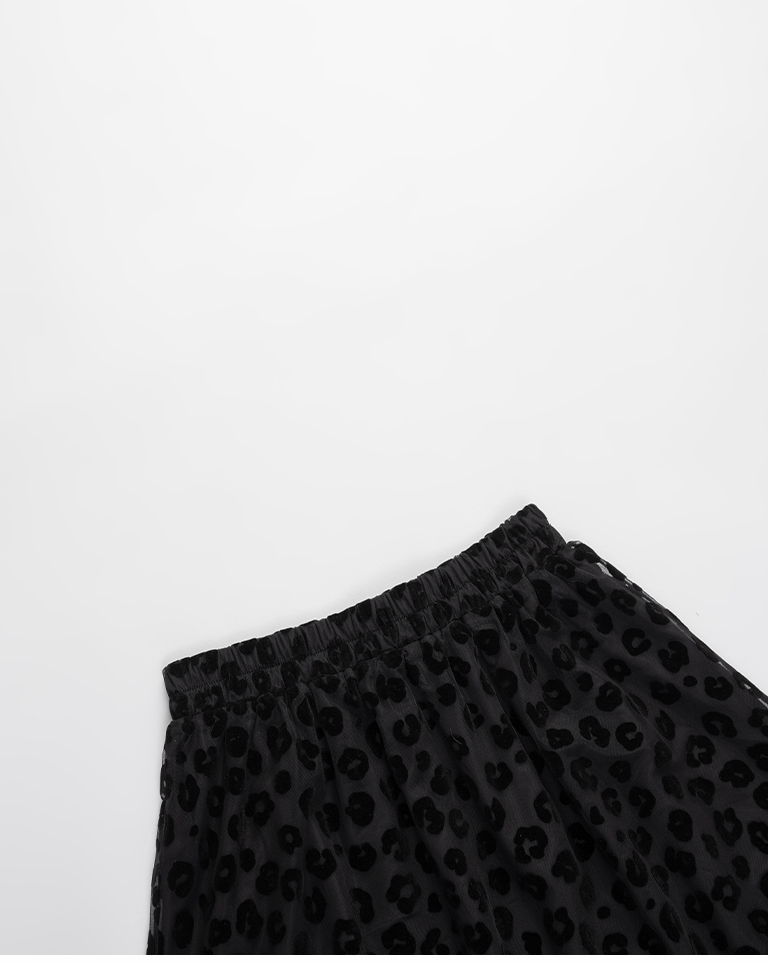 豹紋紋理絨感網紗設計直筒長裙