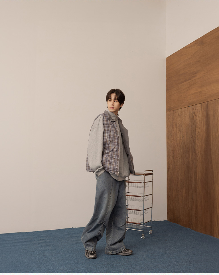 姵萱聯名 洗水剪接打褶彎刀牛仔褲