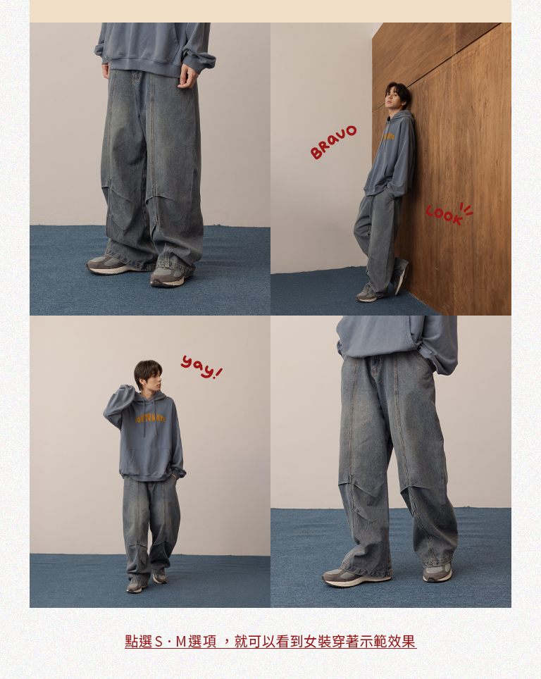 姵萱聯名 洗水剪接打褶彎刀牛仔褲 S/M/L/XL