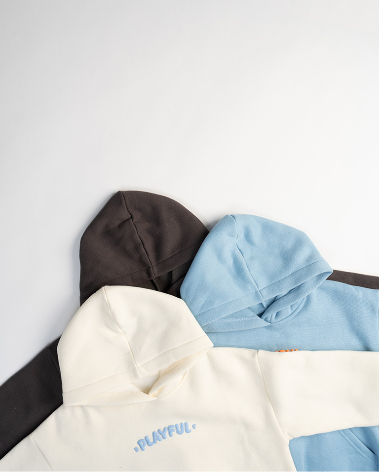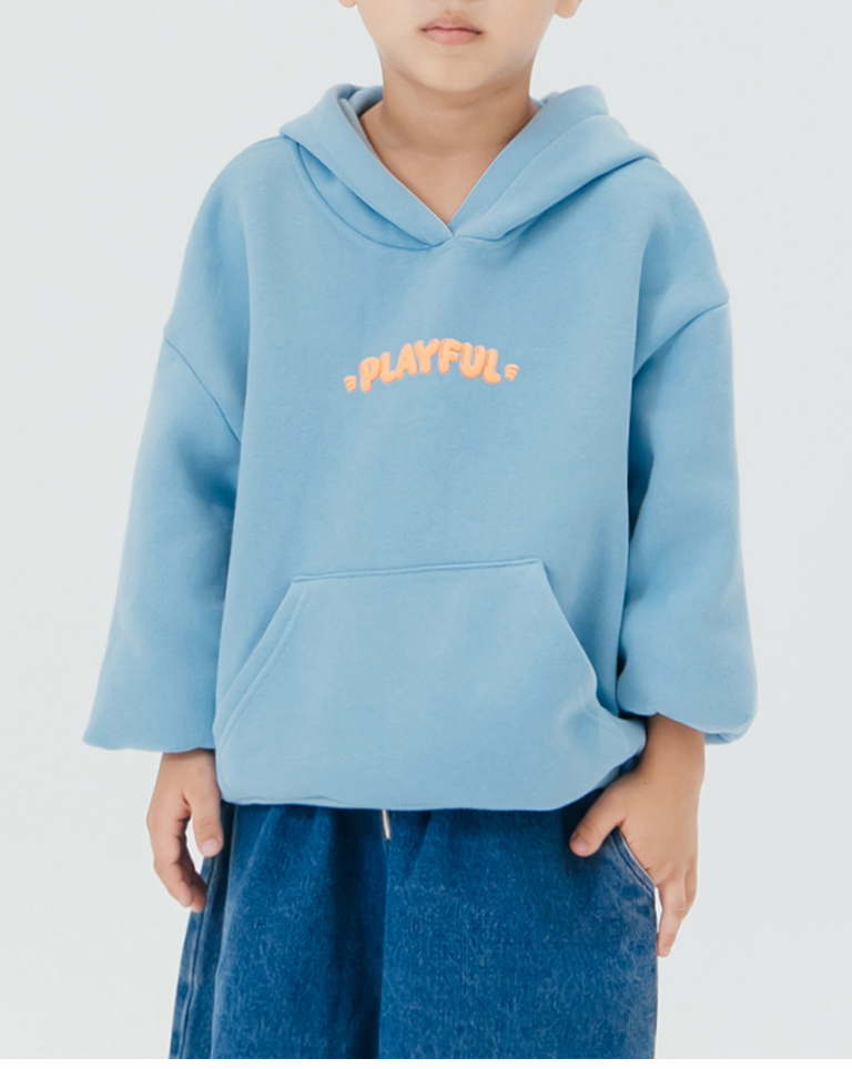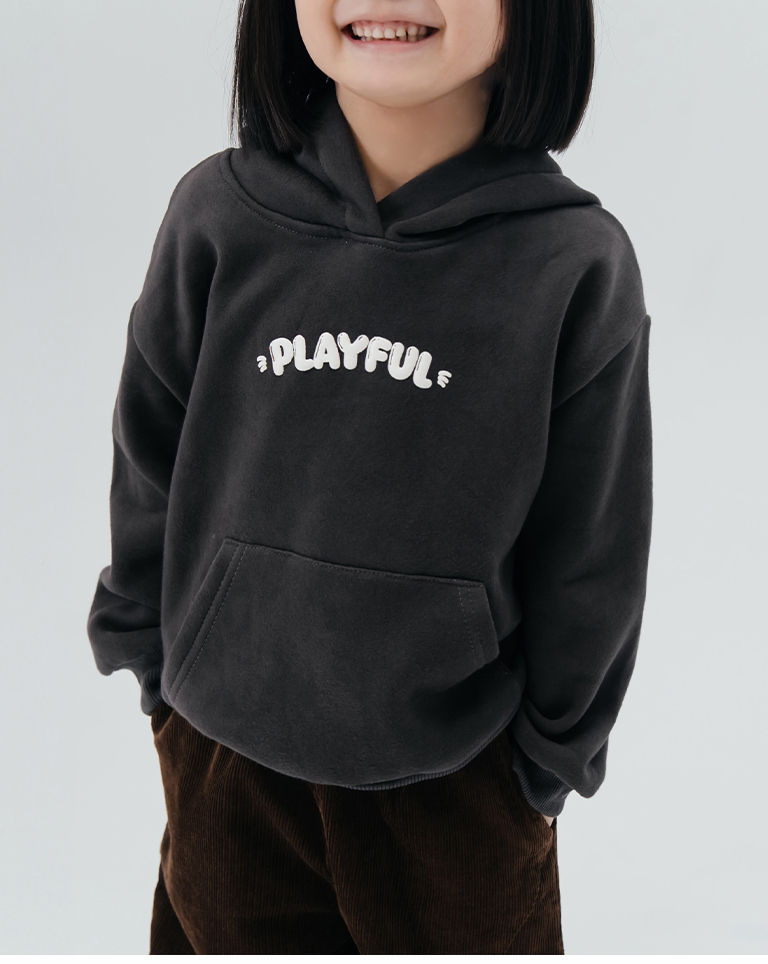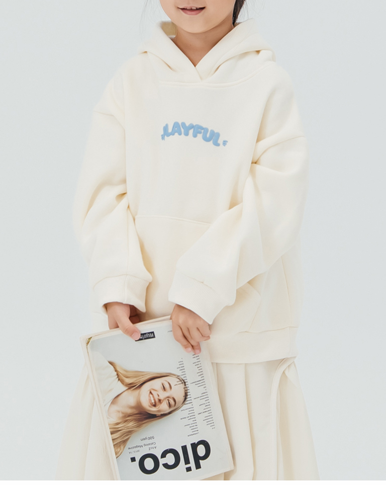 童裝 泡泡印字內刷毛連帽衛衣 三色售M-XL