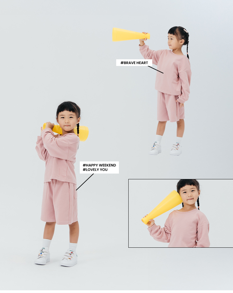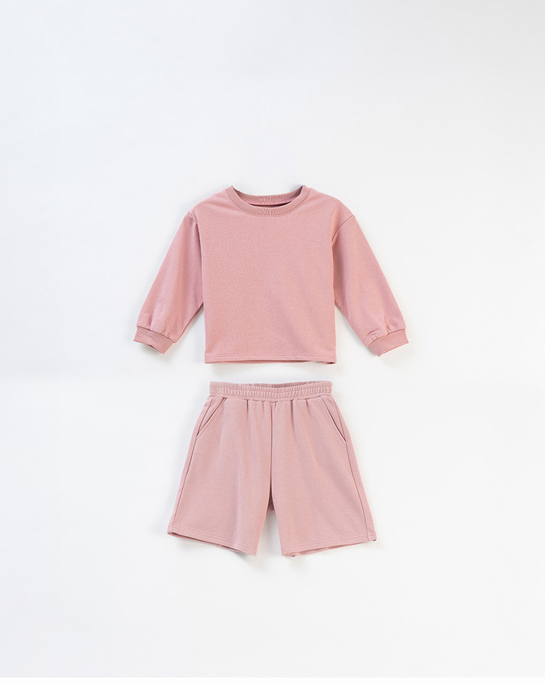 童裝 素面休閒長袖短褲套裝-粉 M/L/XL