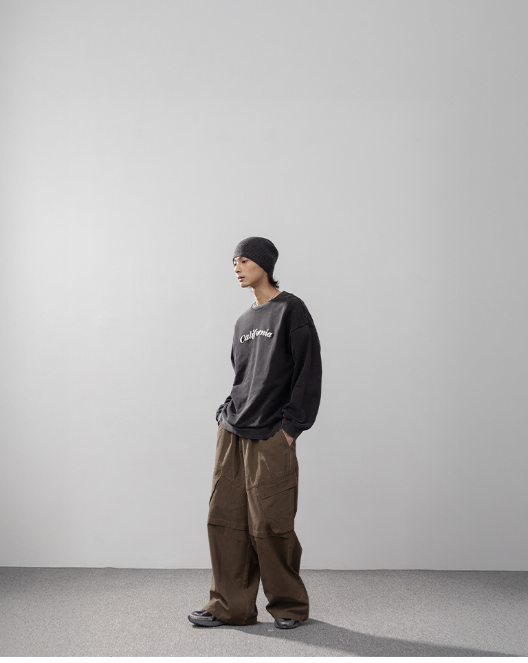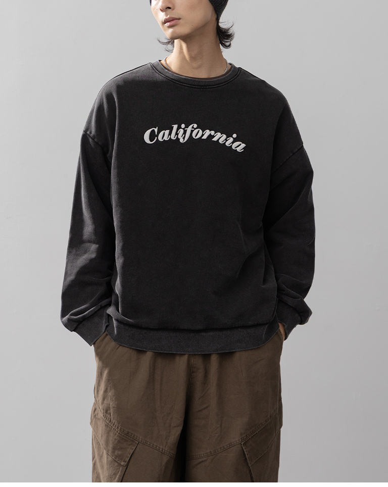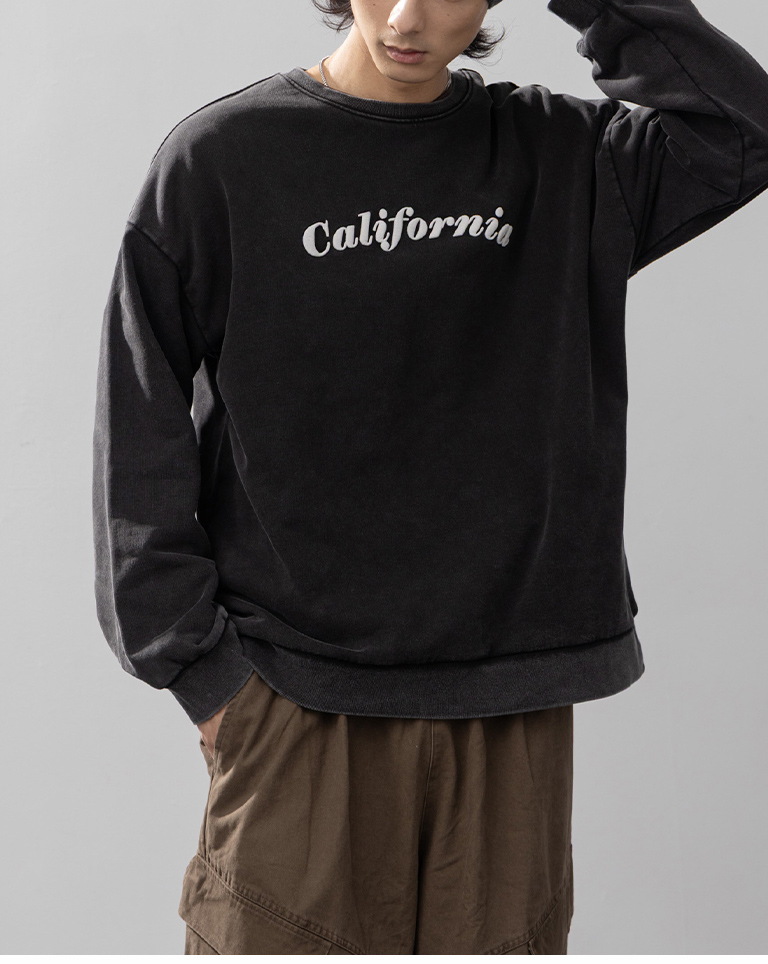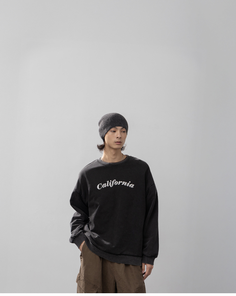 男裝 California洗水設計長袖衛衣-黑M/L/XL