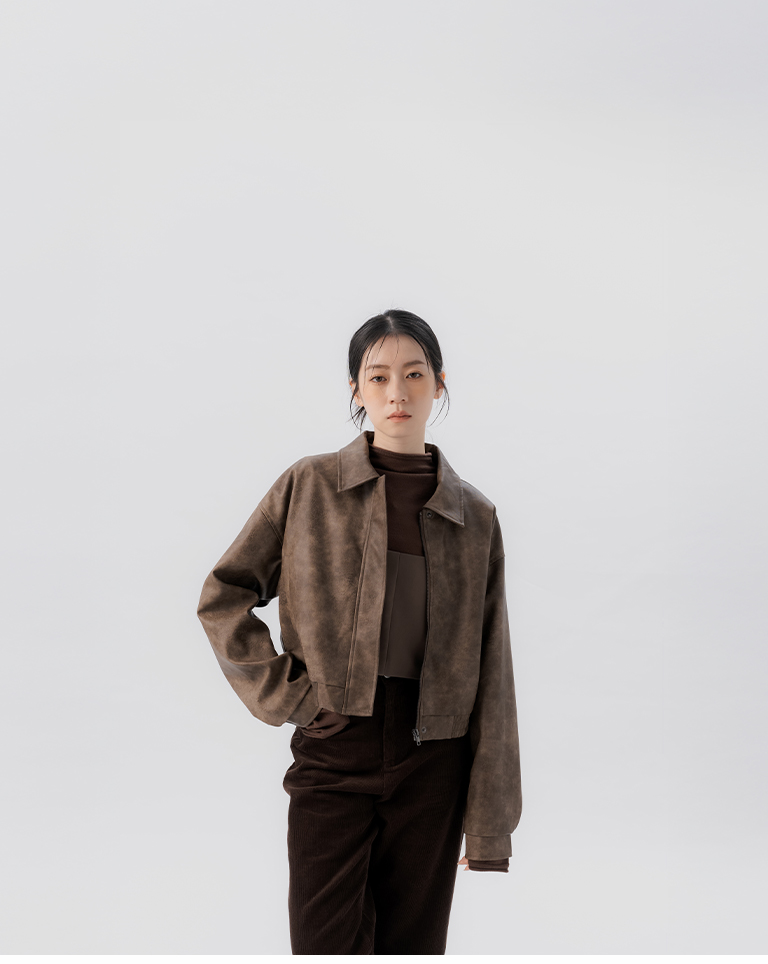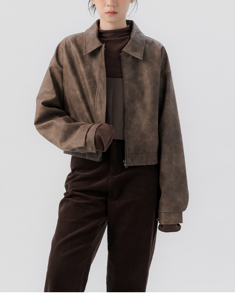 質感霧面設計短版皮革夾克外套