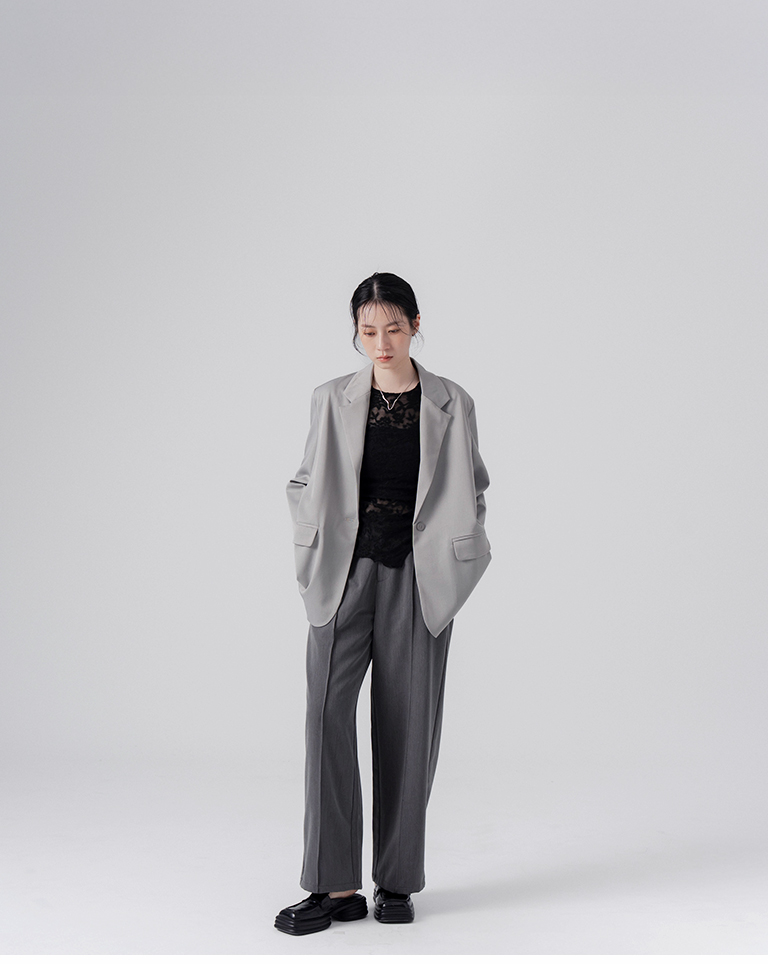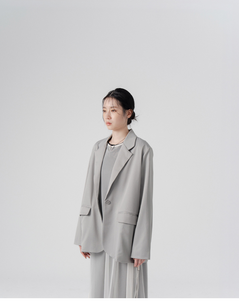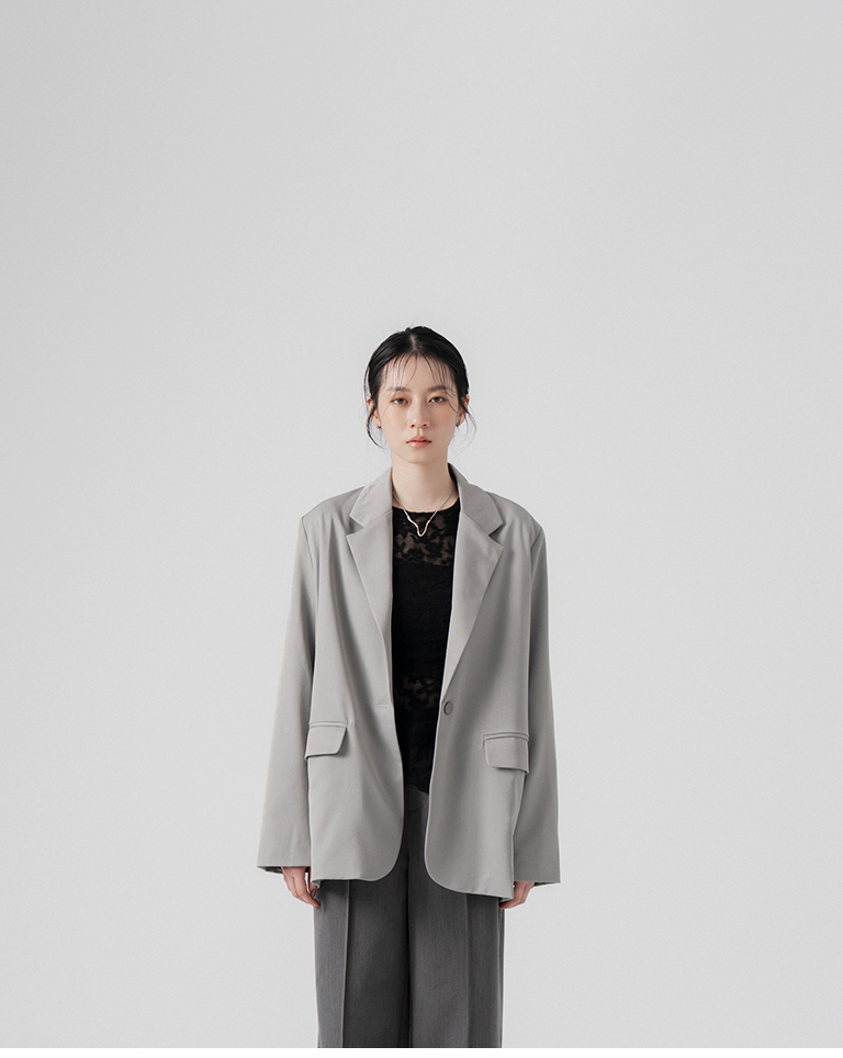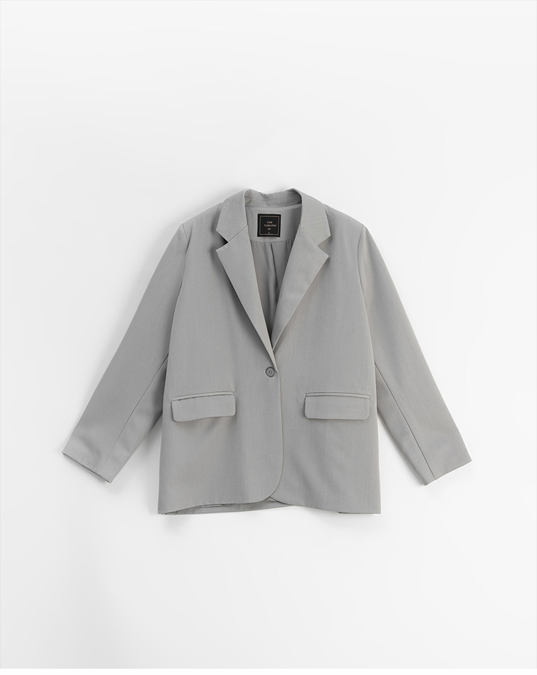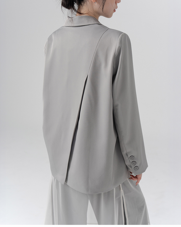 後片開衩設計素面西裝外套-灰