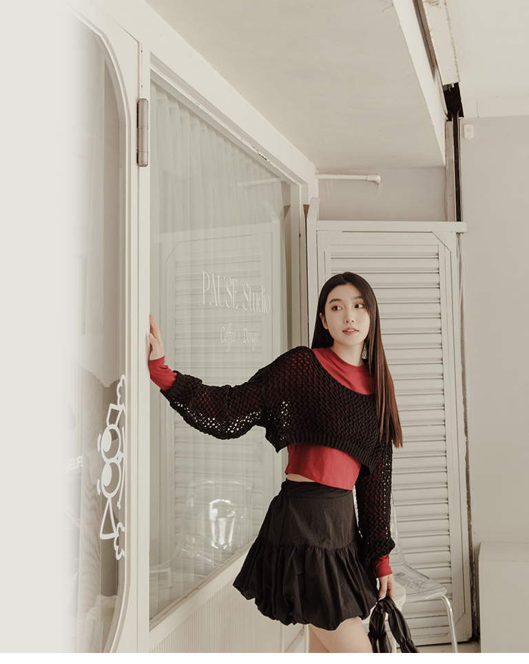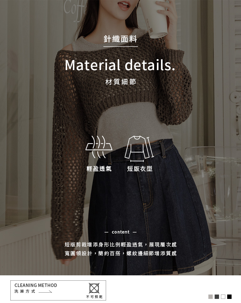 針織網格鏤空設計短版上衣 四色售