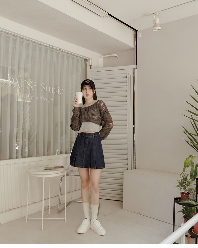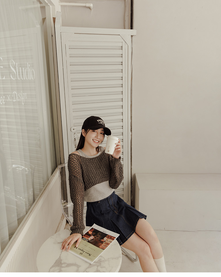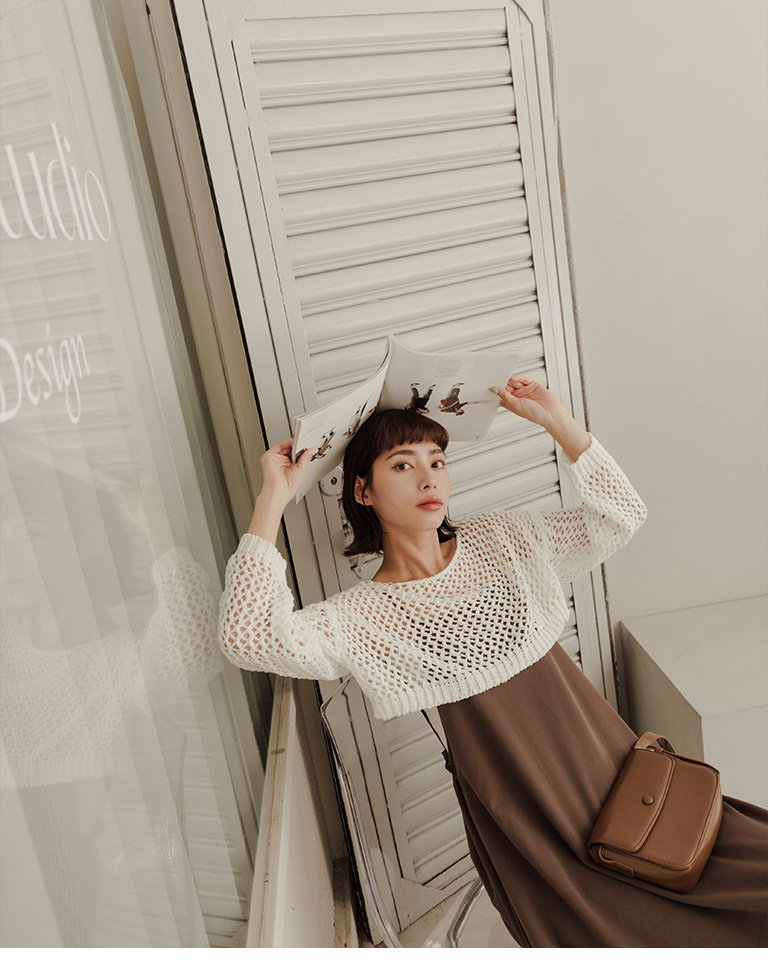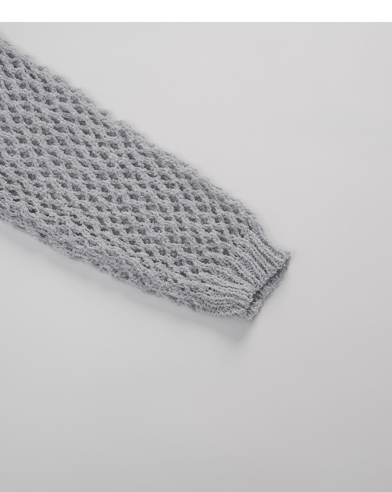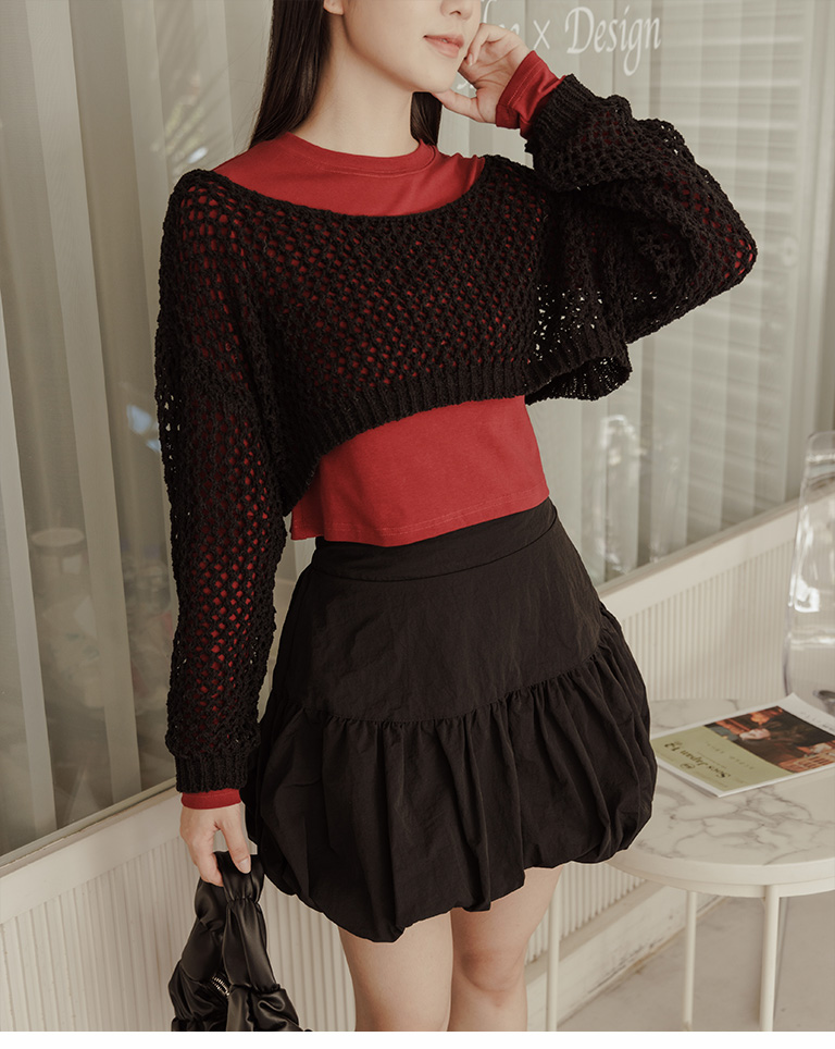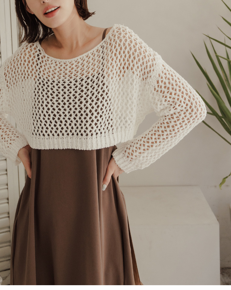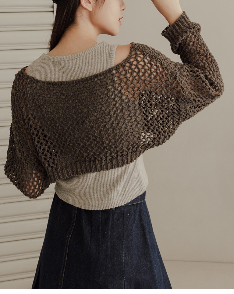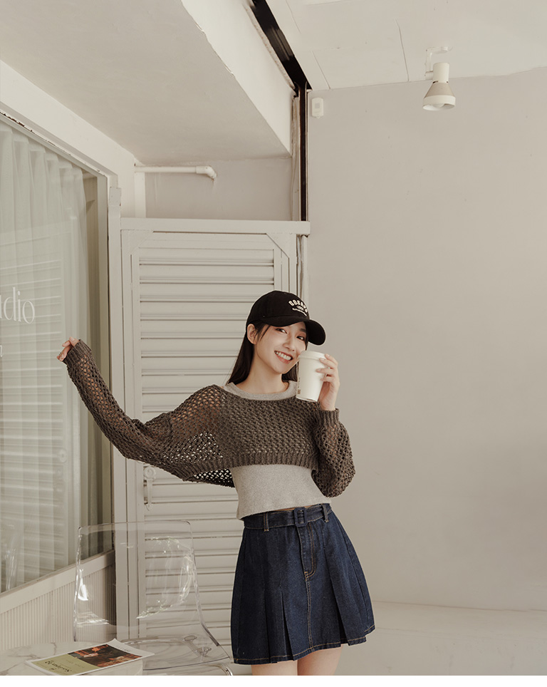 針織網格鏤空設計短版上衣