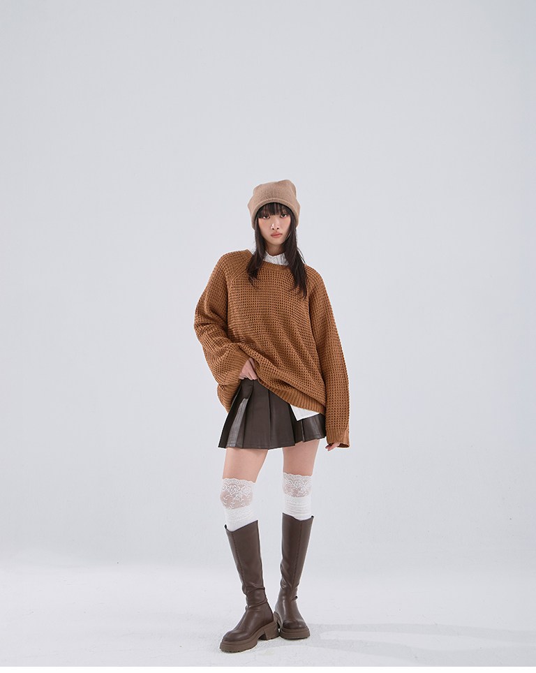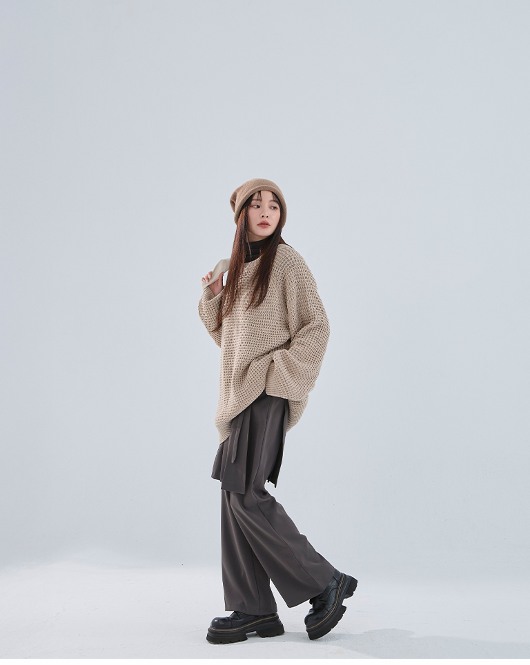 S~L身形實測!分尺寸皺皺木耳邊透膚高領長袖上衣
