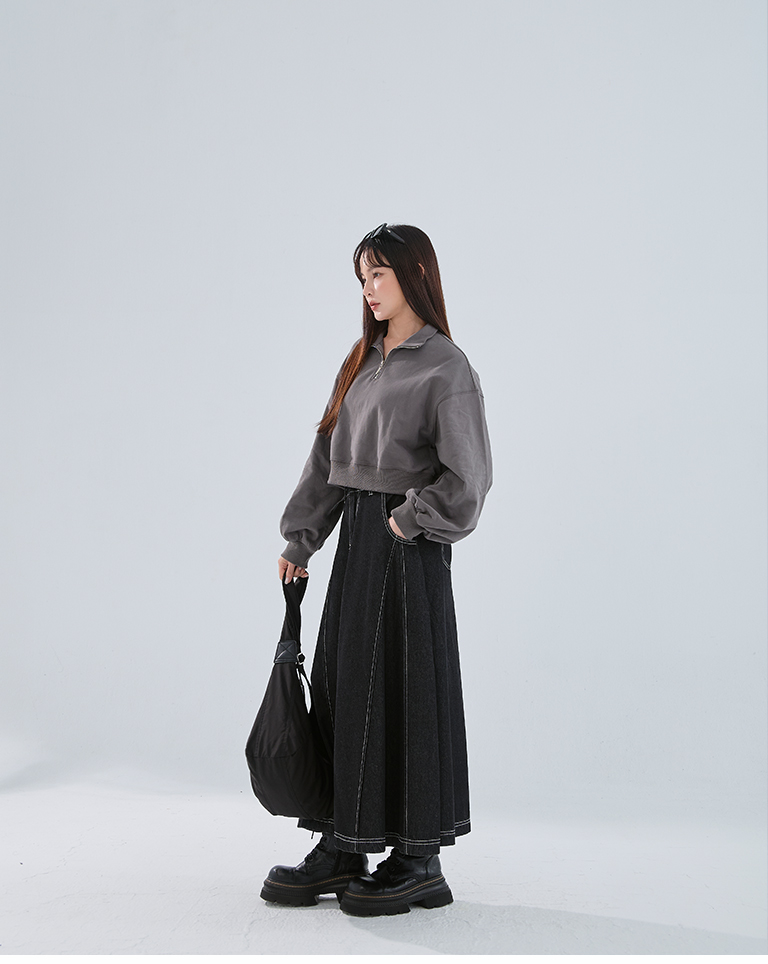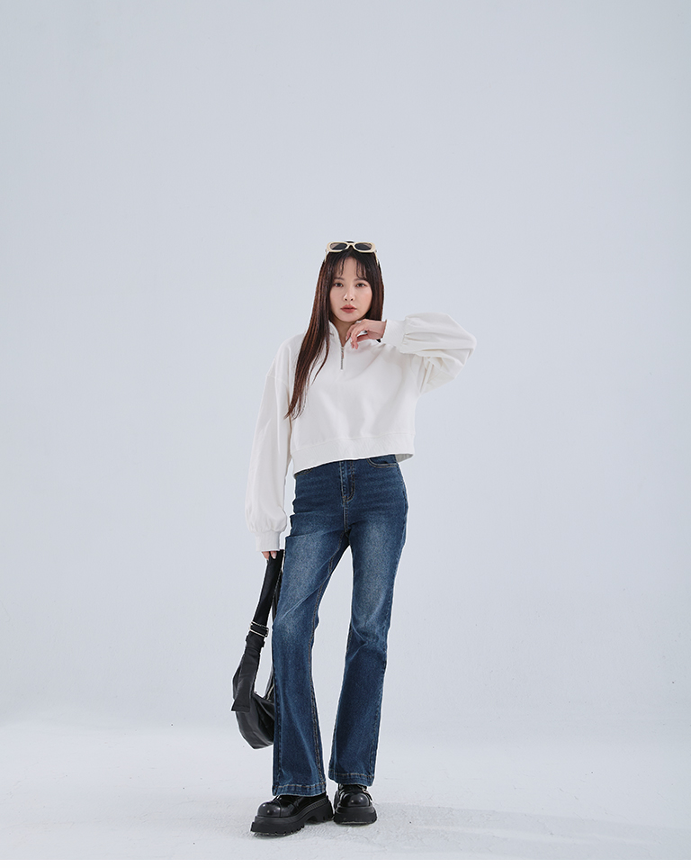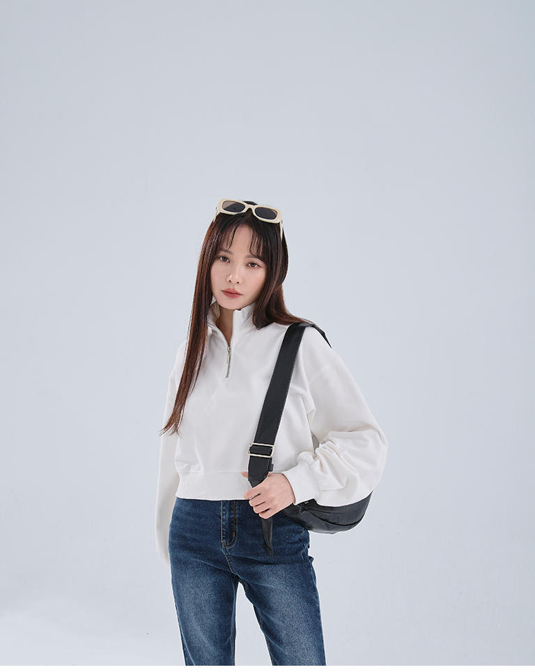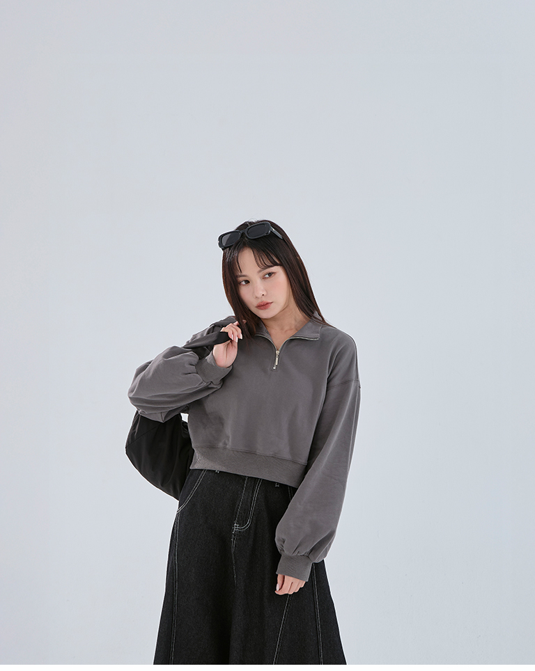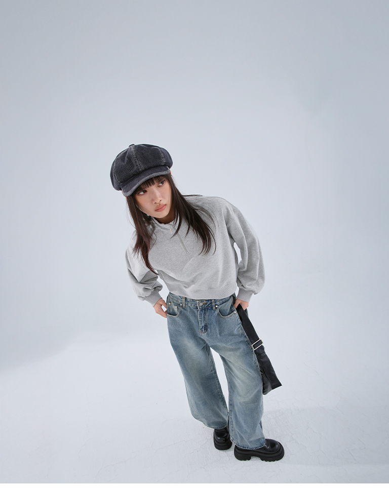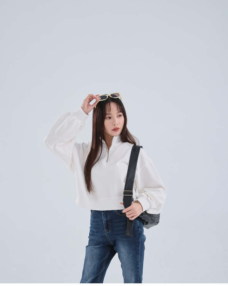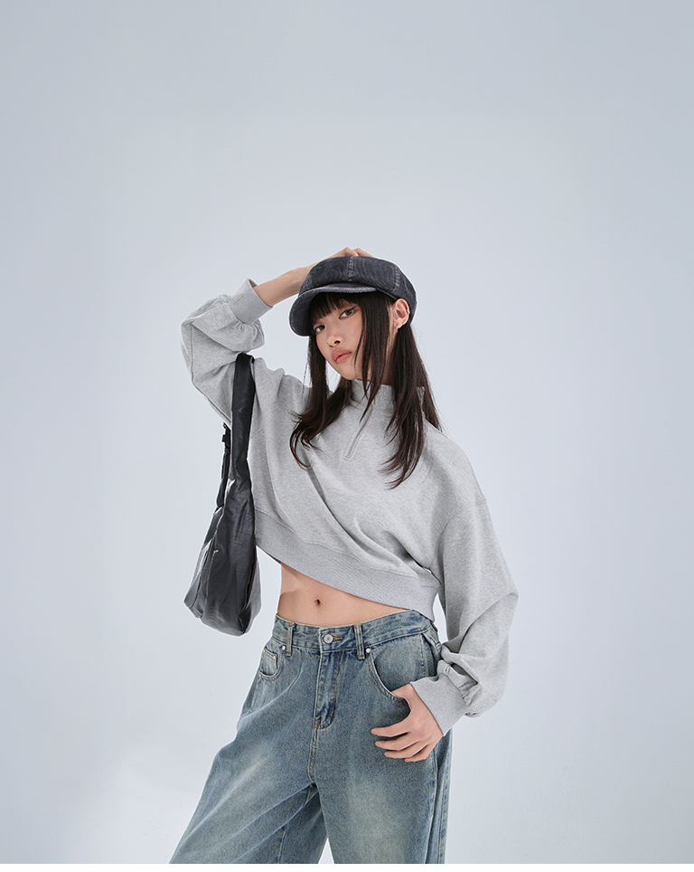 半門襟微磨毛短版衛衣