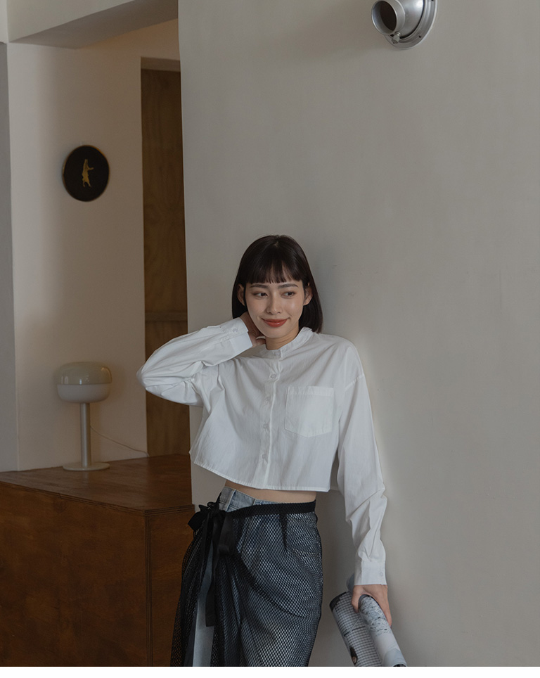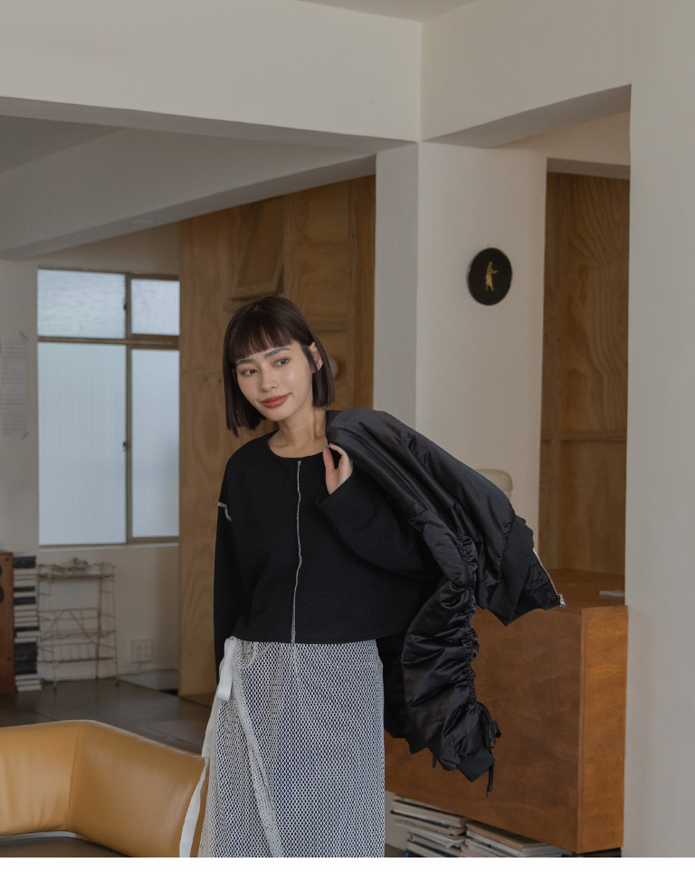 S~L身形實測!分尺寸皺皺木耳邊透膚高領長袖上衣