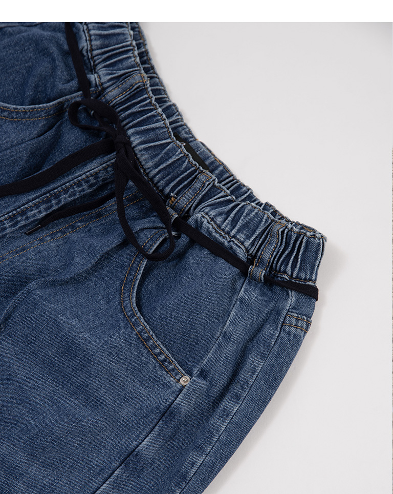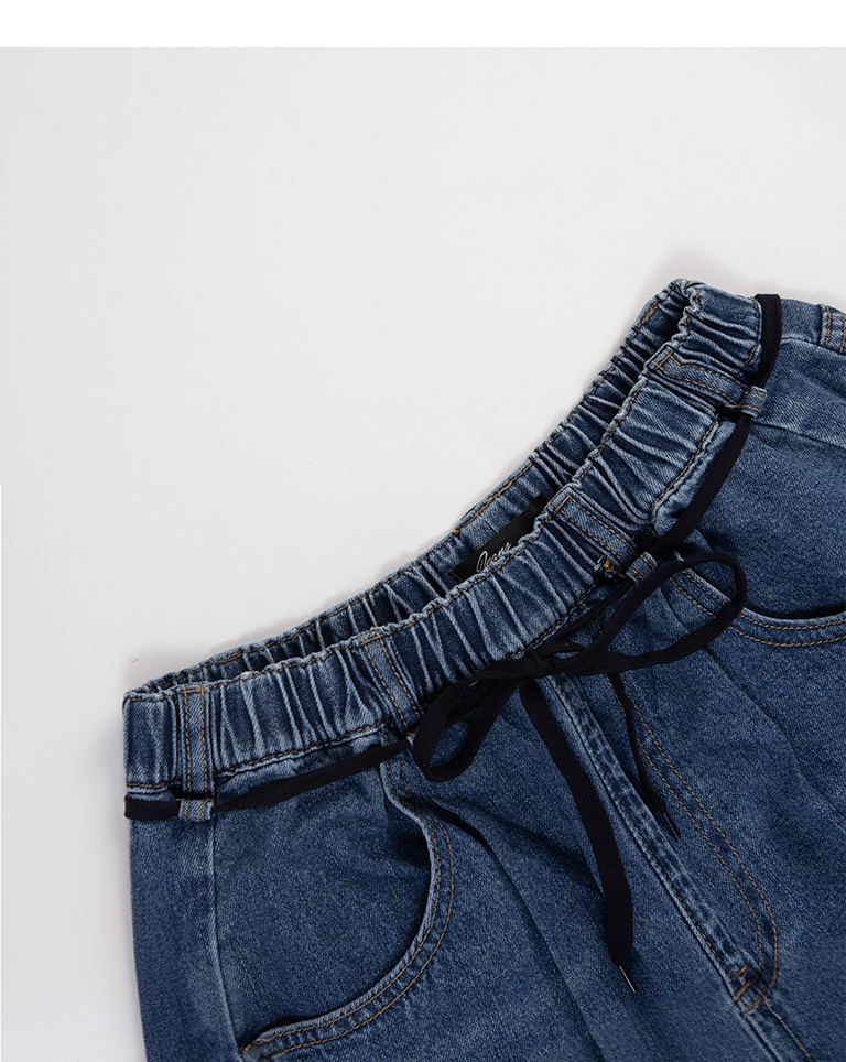 側剪接腰綁帶牛仔蘿蔔褲 M/L