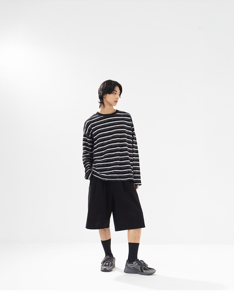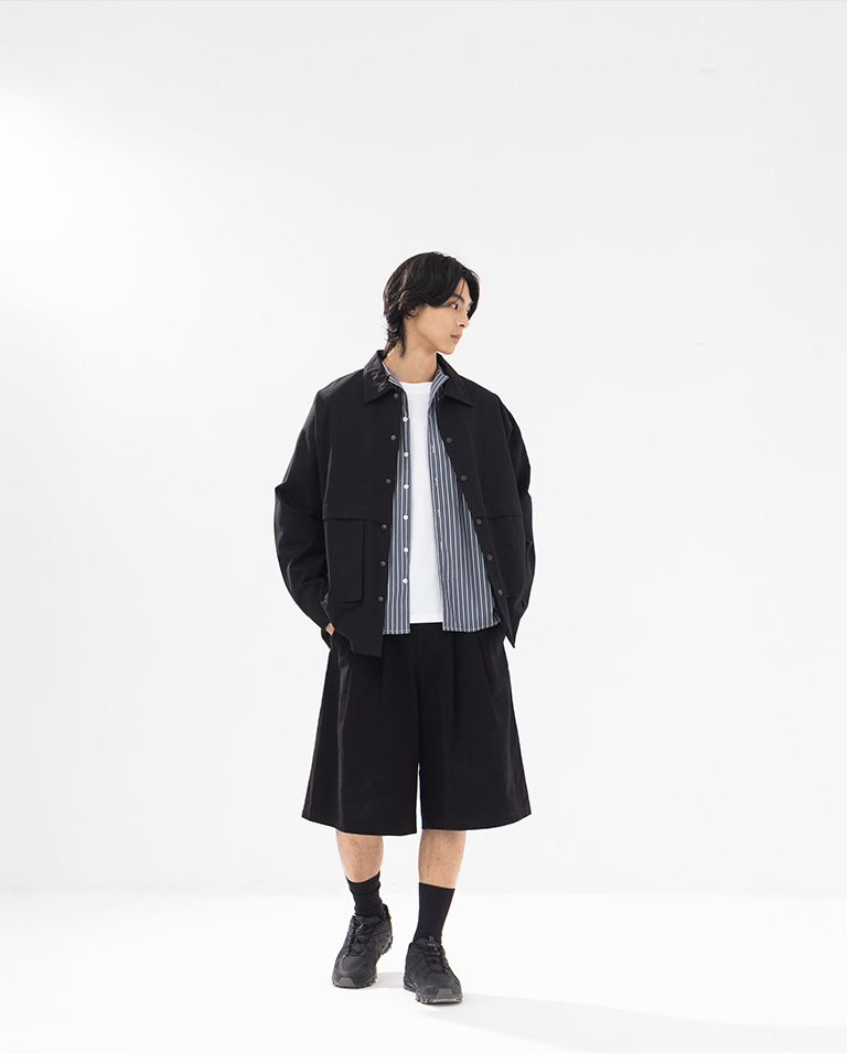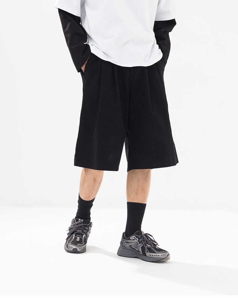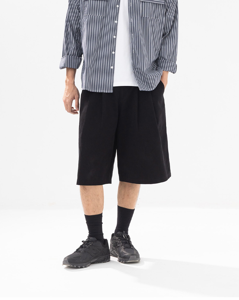 男裝 素面斜紋打褶造型短褲-黑 S-XL