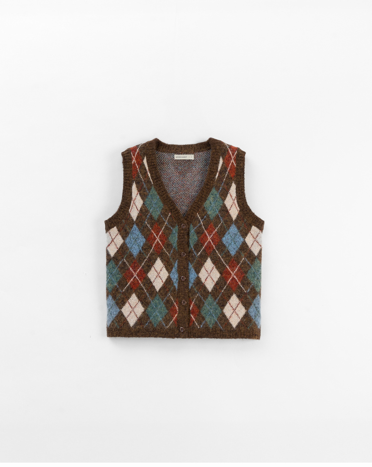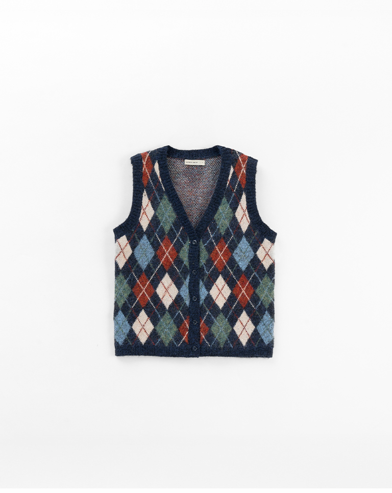 配色菱格紋V領針織背心